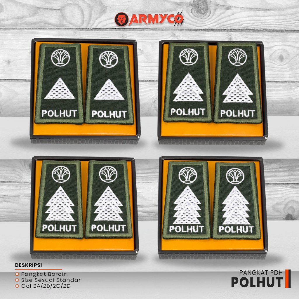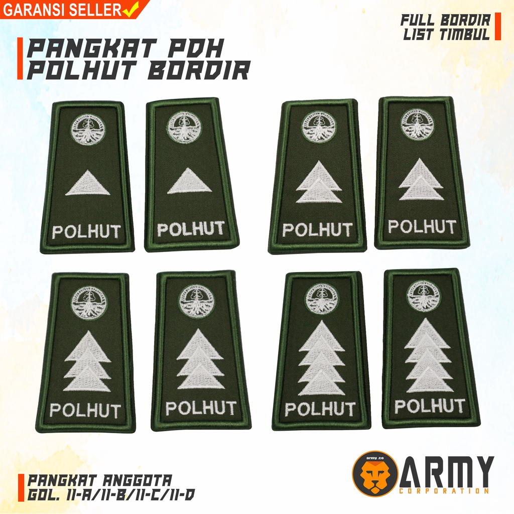 pangkat pdh polhut logo baru bordir golongan 2a 2b 2c 2d