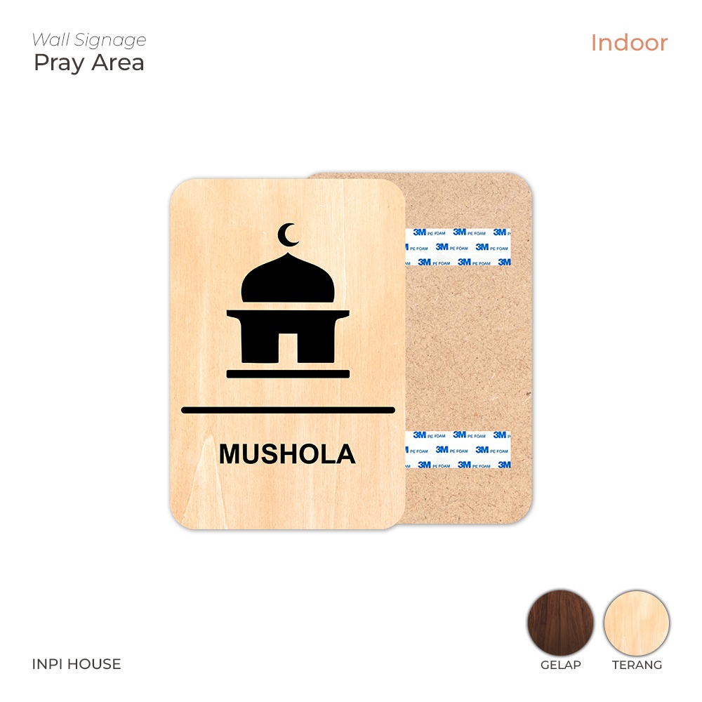 papan tanda logo mushola - papan tanda tulisan musola - Coklat