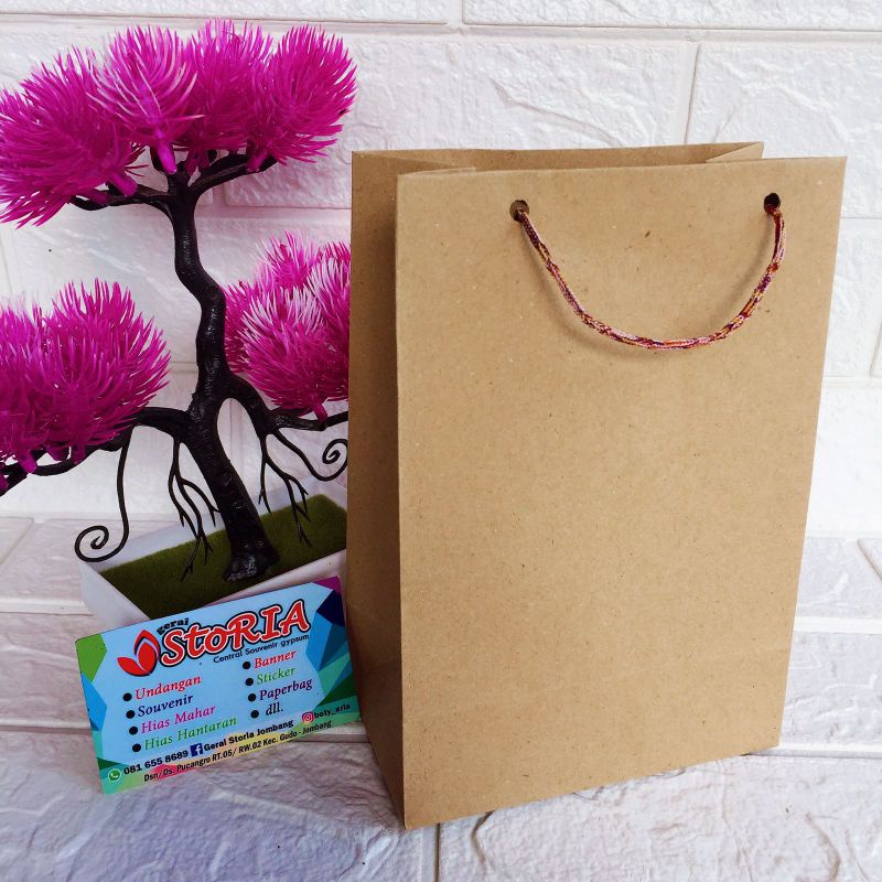 paper bag polos kecil | ukuran 14x7x20 | tas kertas | paper bag custom | paper bag botol kecil