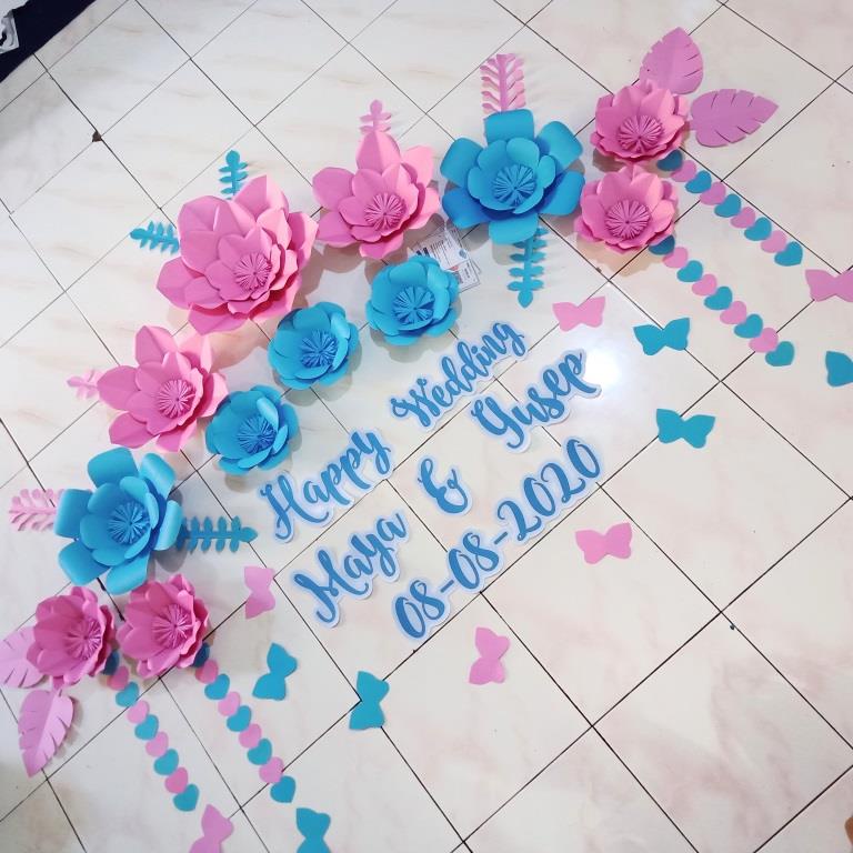 paper flower paket dekorasi dinding / hiasan ulang tahun / dekorasi pernikahan / hiasan dinging / bunga kertas paket lengkap