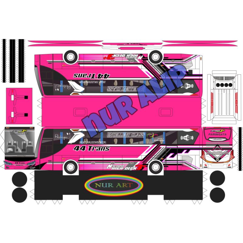 papercraft bus DIY, 44 TRANS (jetbus 3 pink)