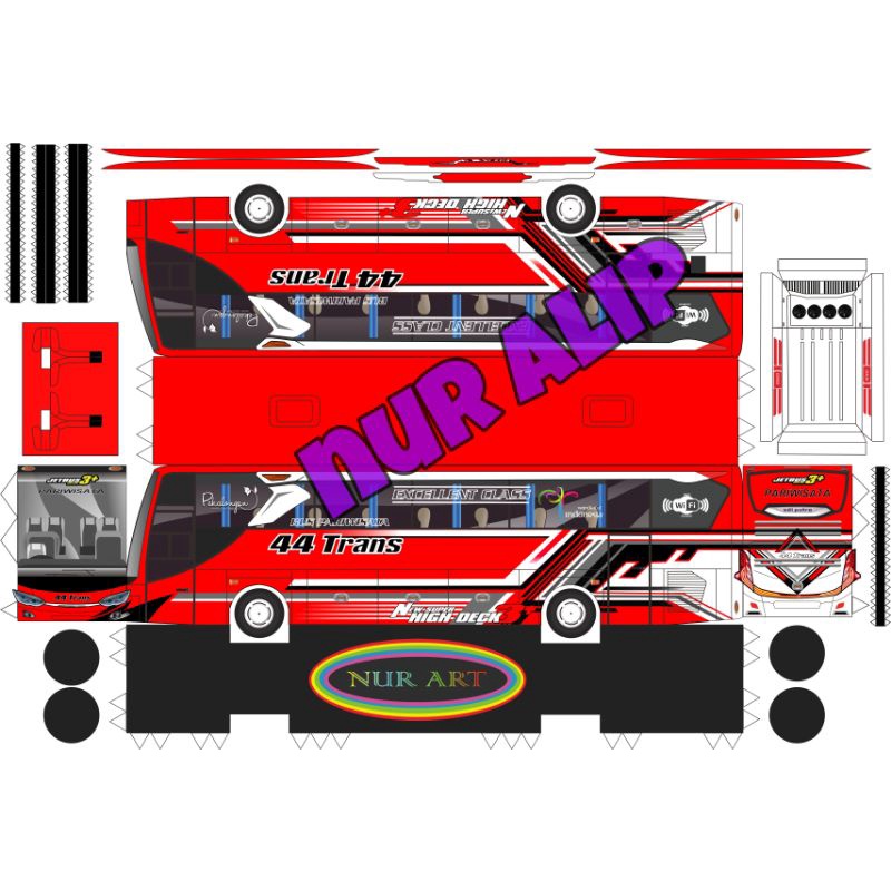 papercraft bus DIY, 44 TRANS (merah)