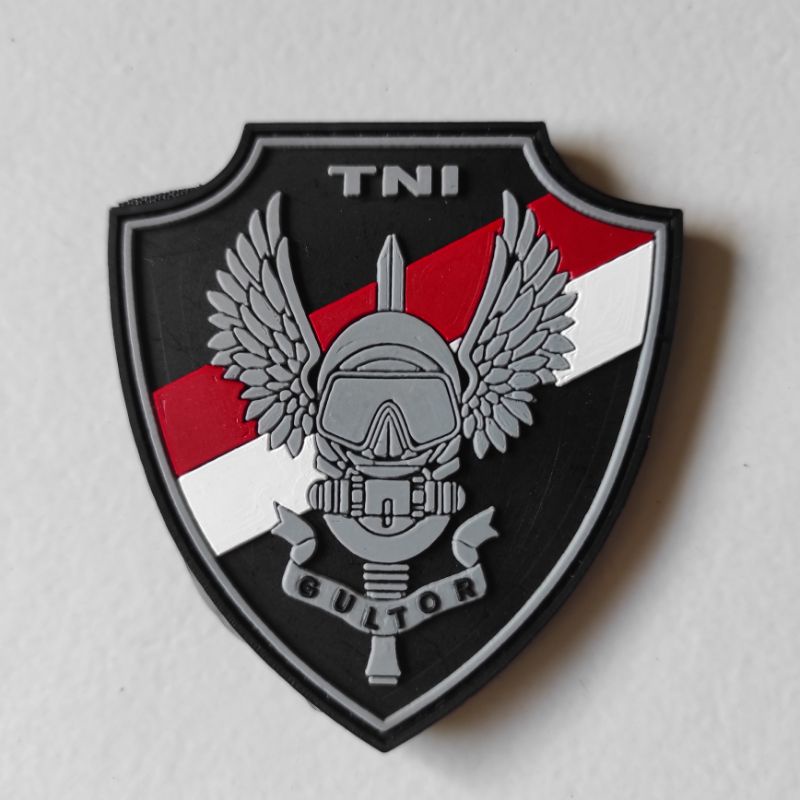patch rubber logo gultor tni + bendera indonesia kecil/rubber patch tni/karet