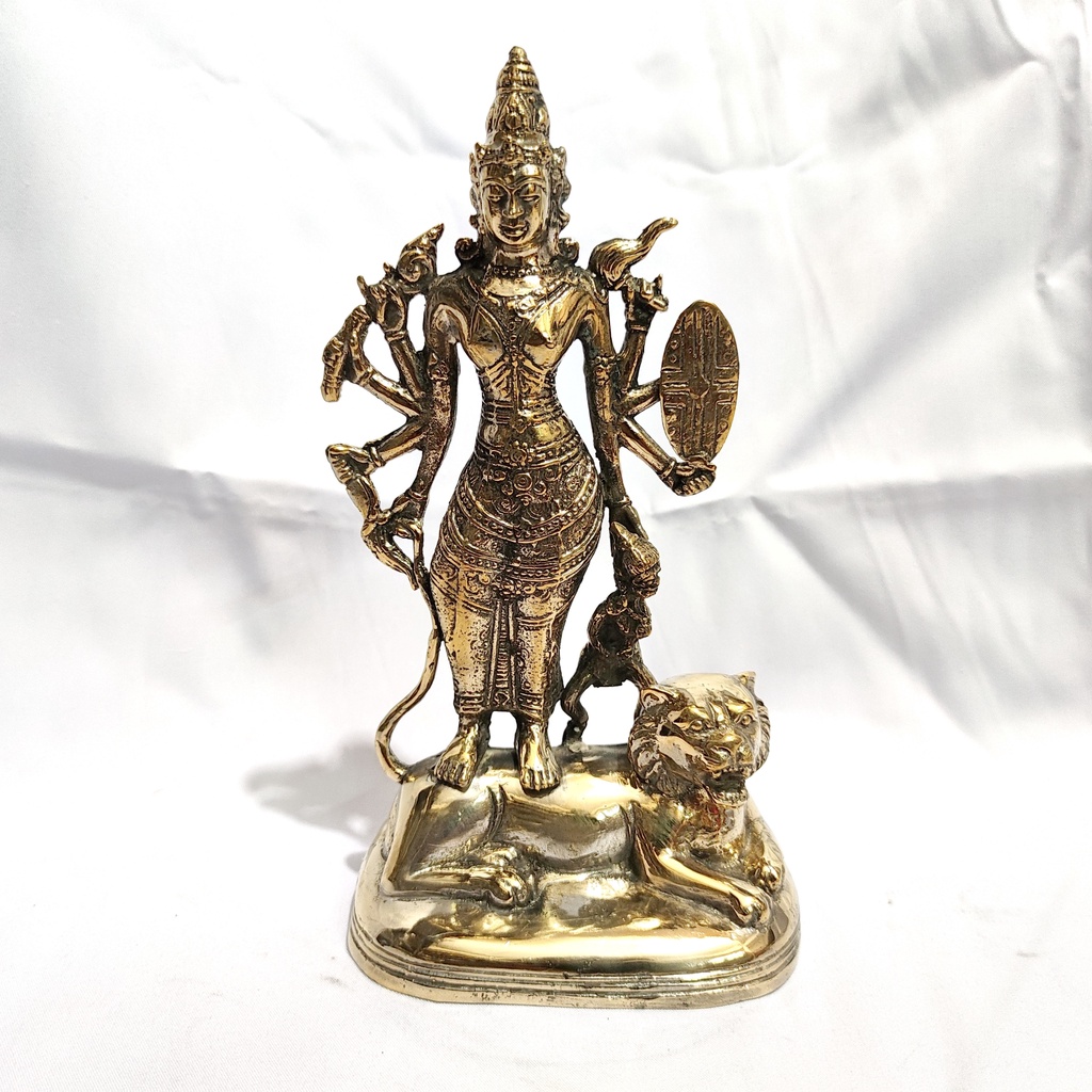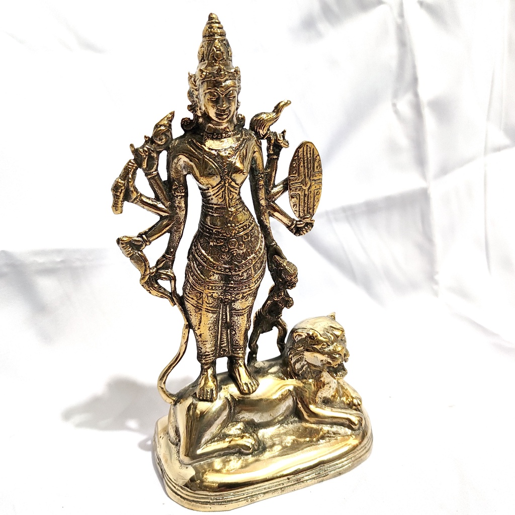 patung dewi durga bahan kuningan | dewi durga statue brass 25cm gold