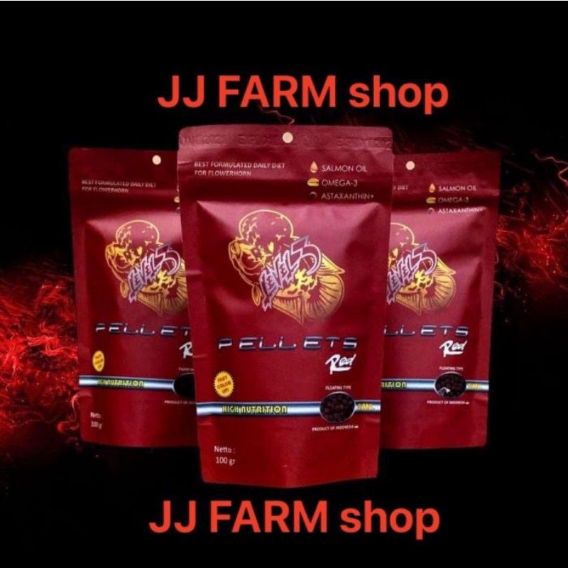 pelet LEVEL3 RED super strong merah kepala 100gram pakan ikan louhan lohan koi koki Ikan hias dll