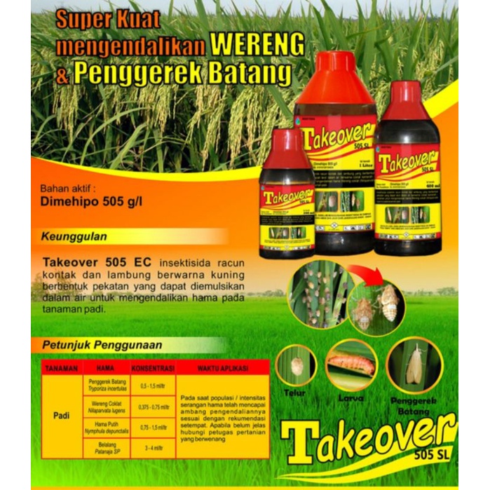 pestisida takeover 505 SL Dimehipo 1 liter, insektisida tanaman padi, jagung, kacang hijau, kedelai, kelapa sawit dan kentang
