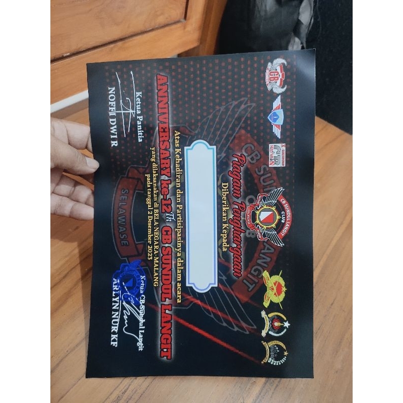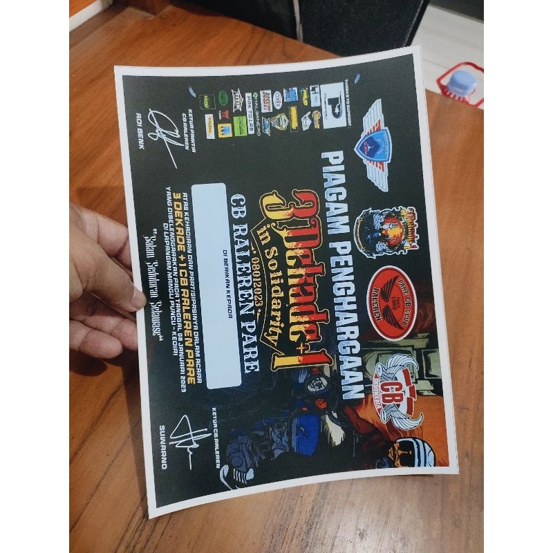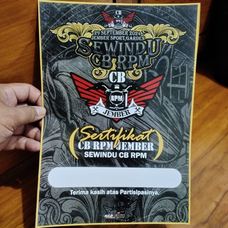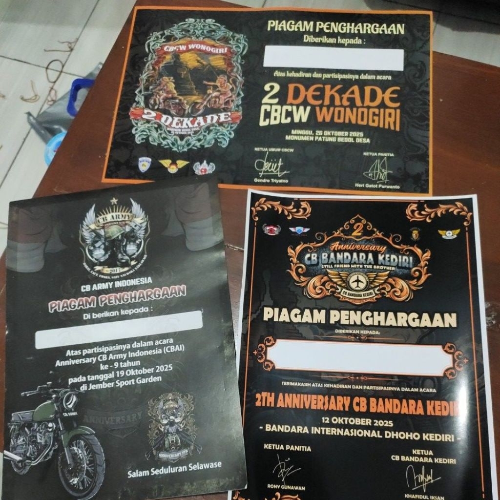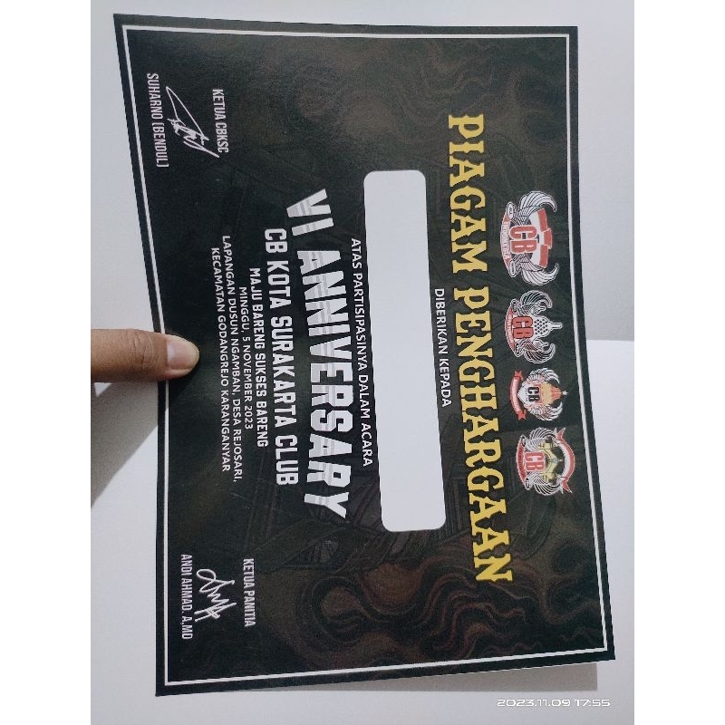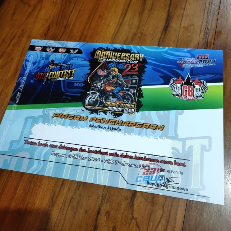 piagam sertifikat acara CB