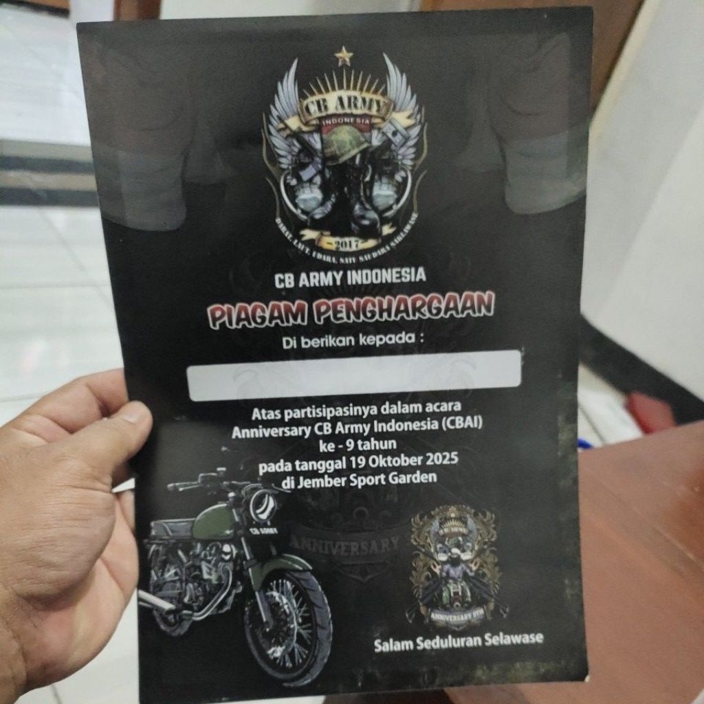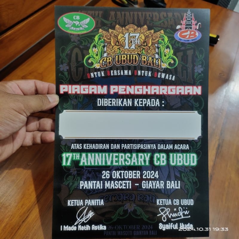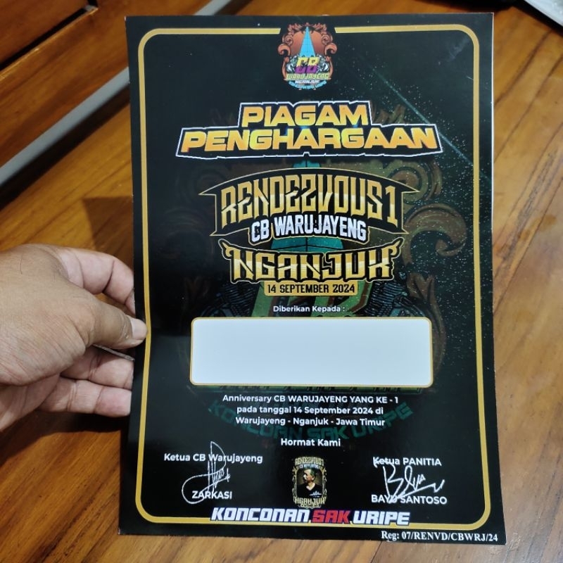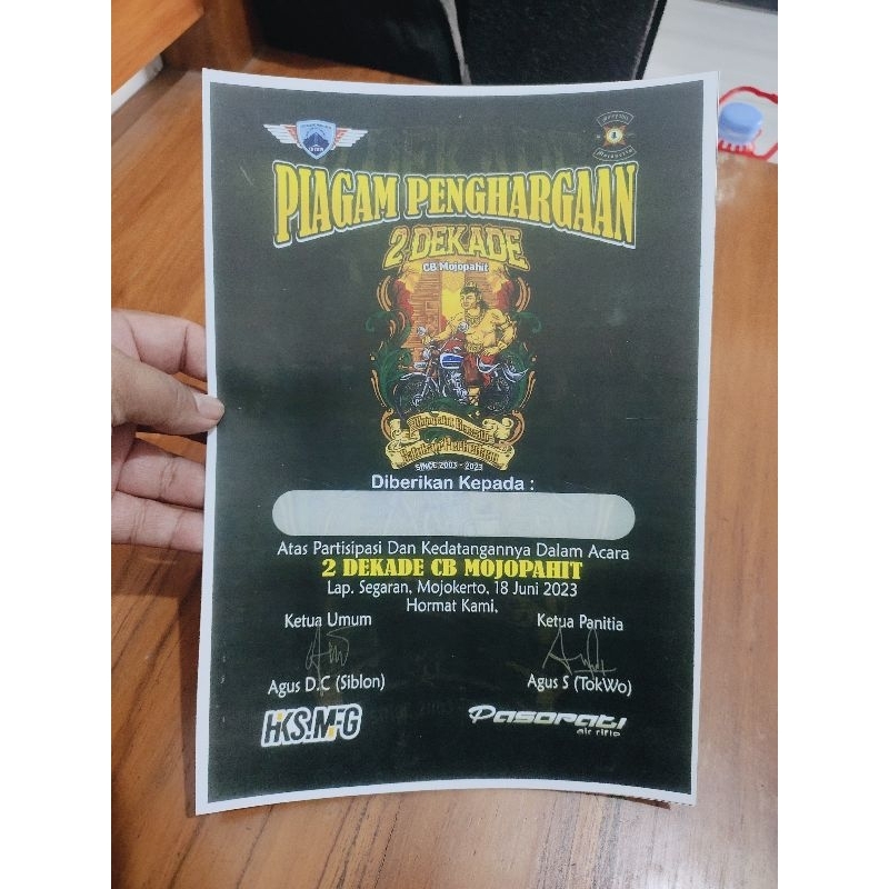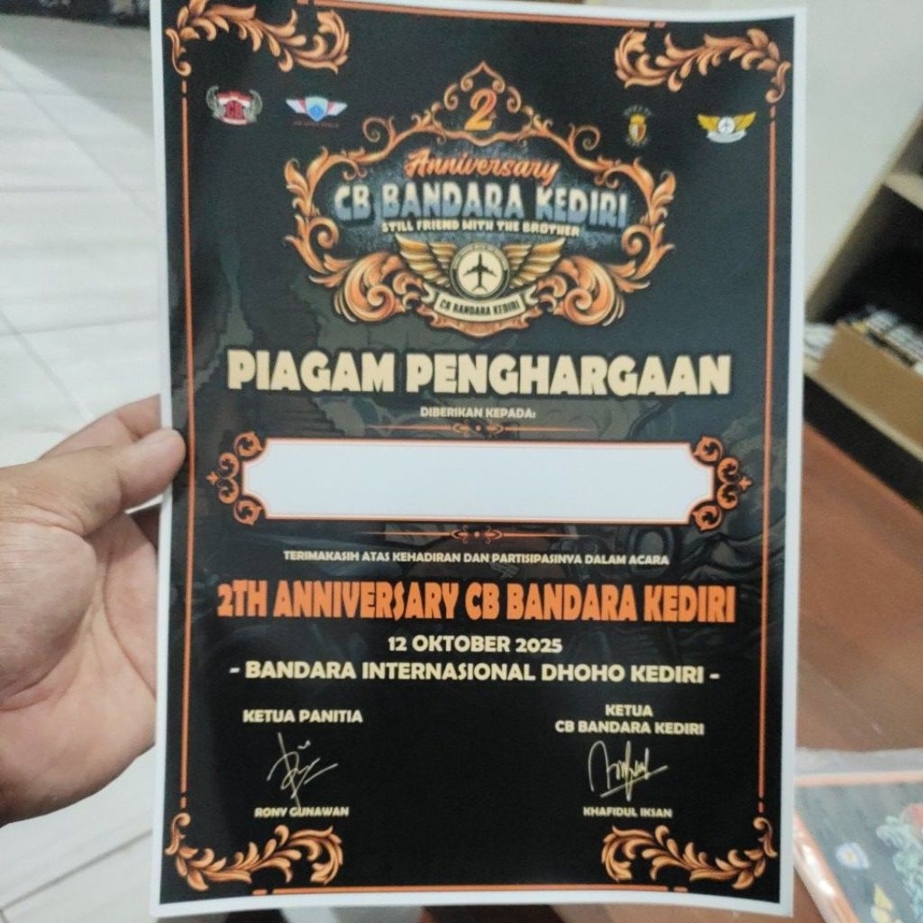 piagam sertifikat acara CB