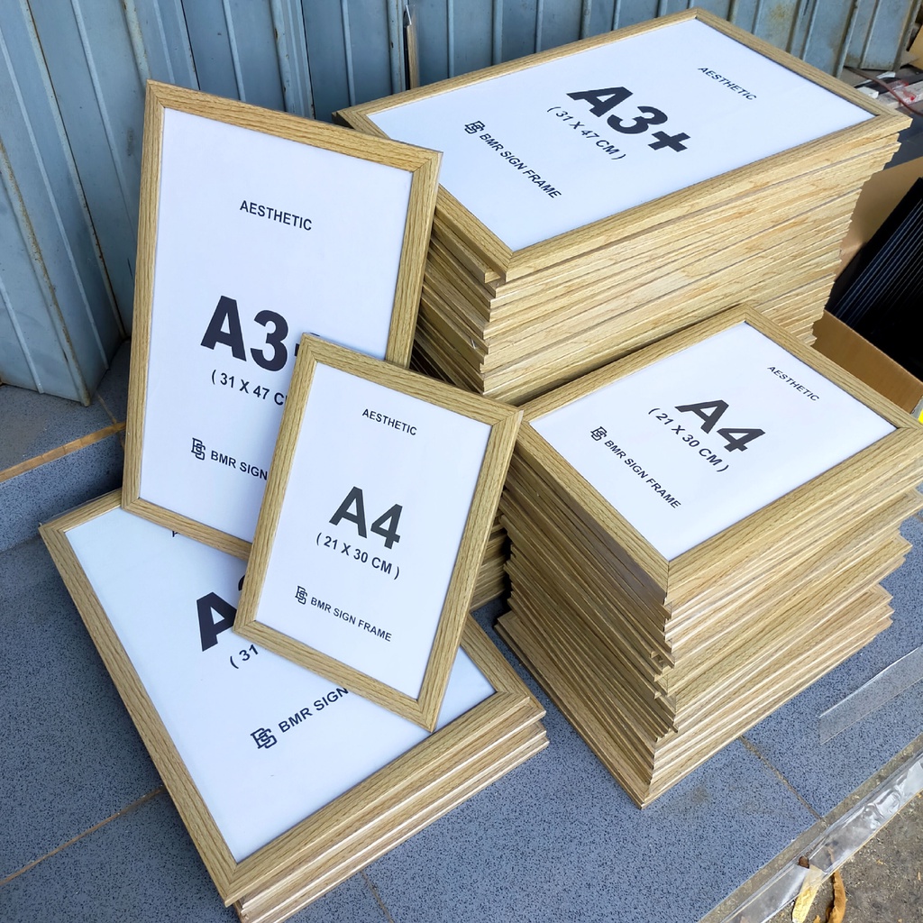 pigora kayu bingkai frame kayu natural + mika bening ukuran A4 A3+