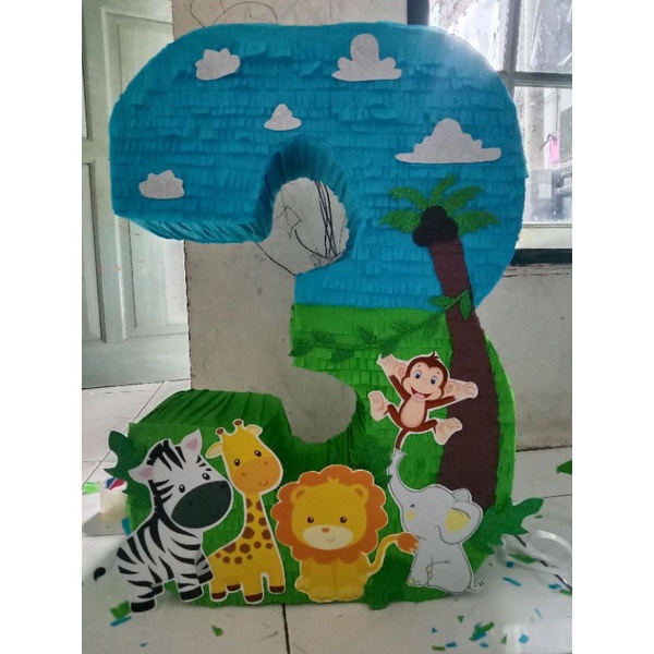 pinata angka 3 animal zoo binatang