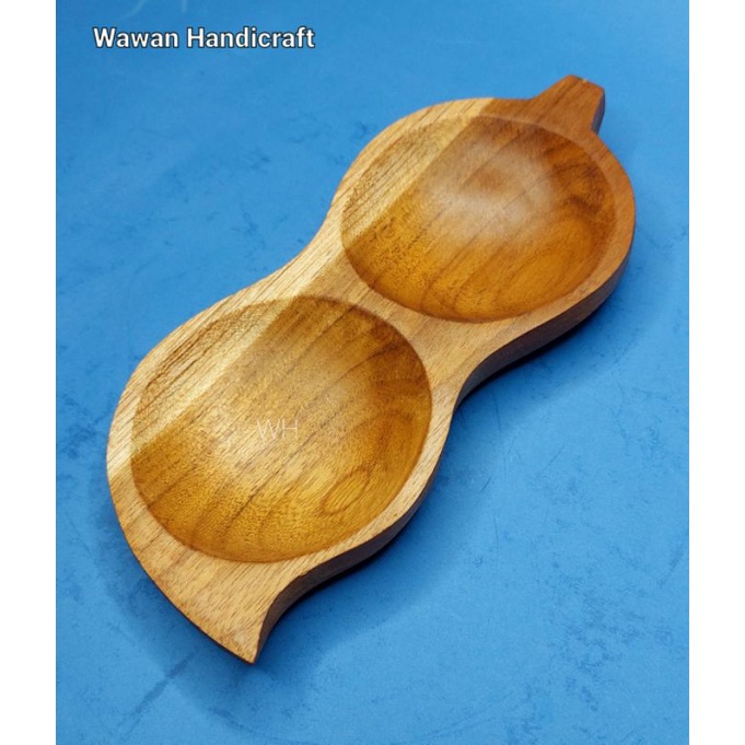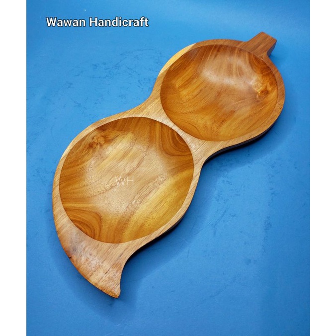 piring kayu/piring saji/piring sekat 2/piring karakter kacang/piring kayu jati