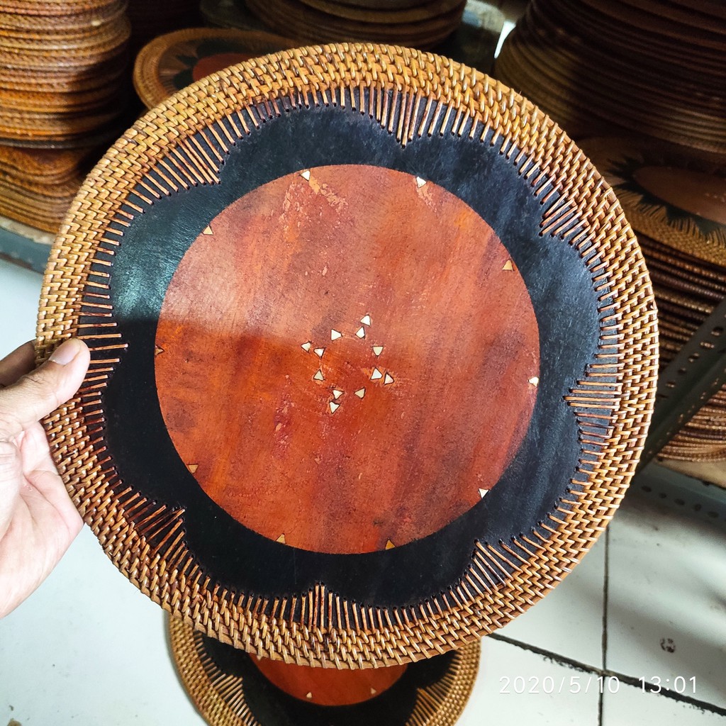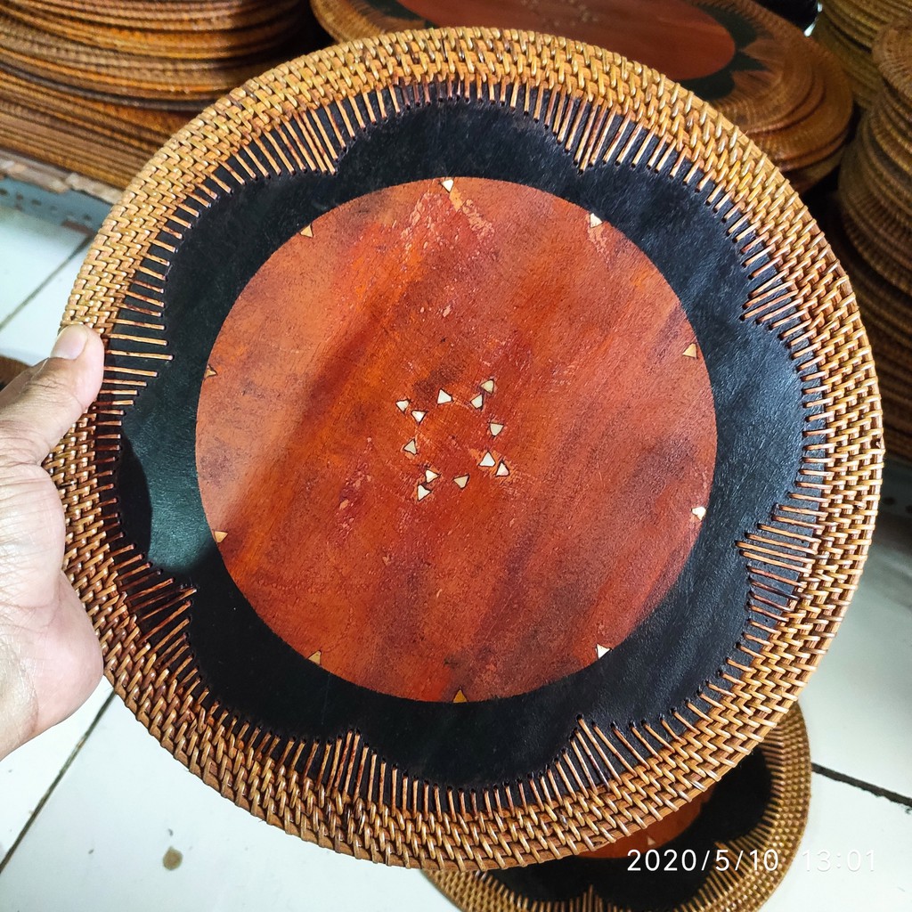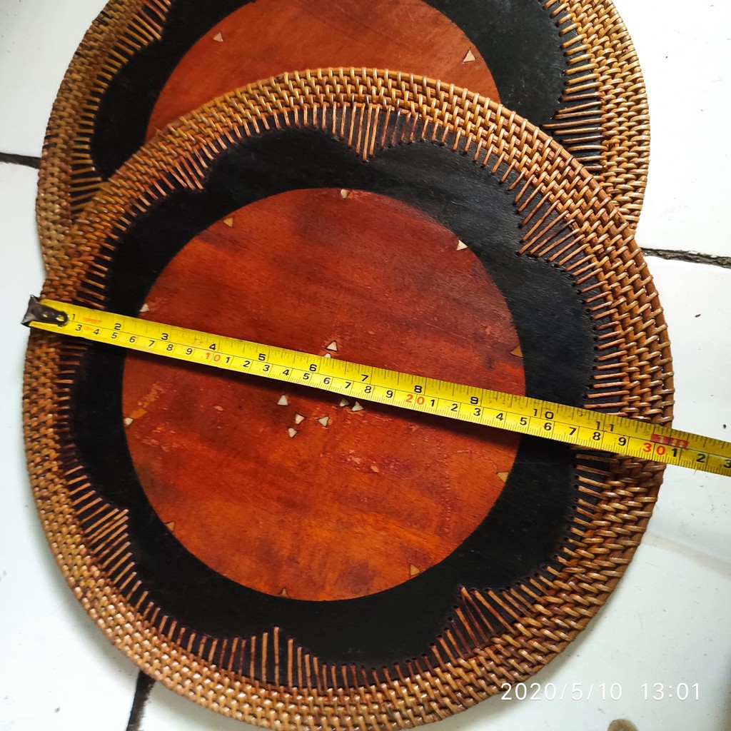 placemat rotan/anyaman rotan/tatakan piring rotan/alas makan rotan/bulat kayu motif songket 30cm