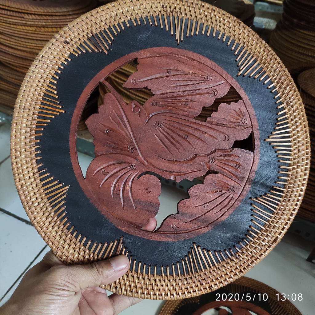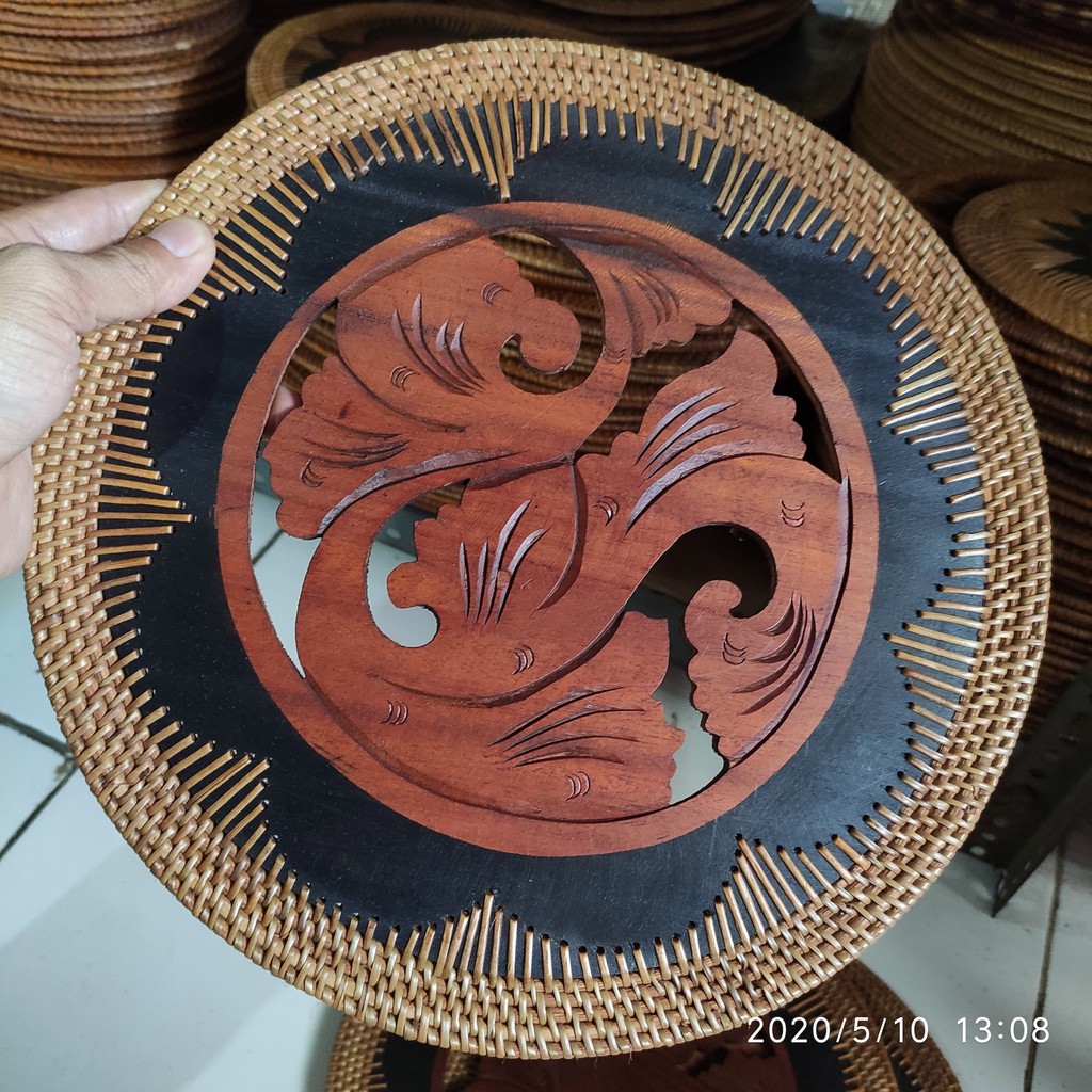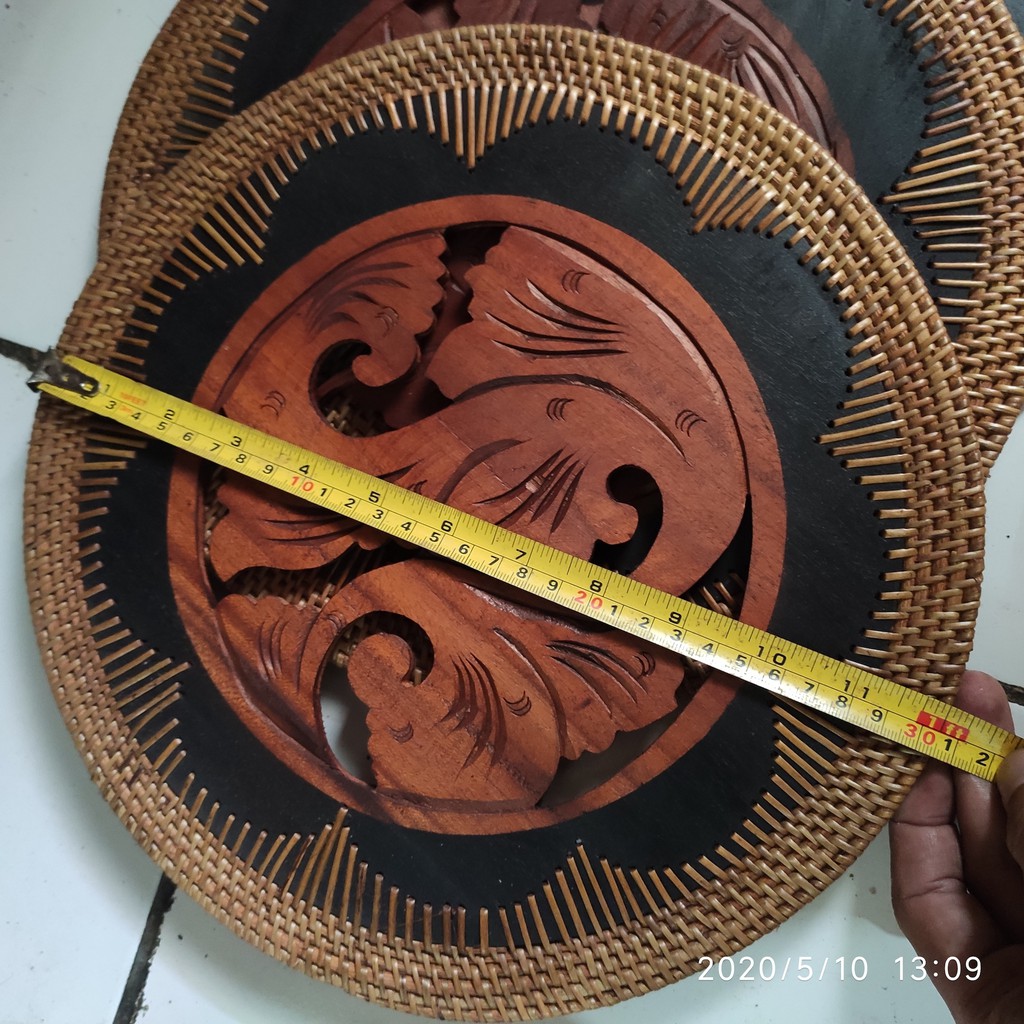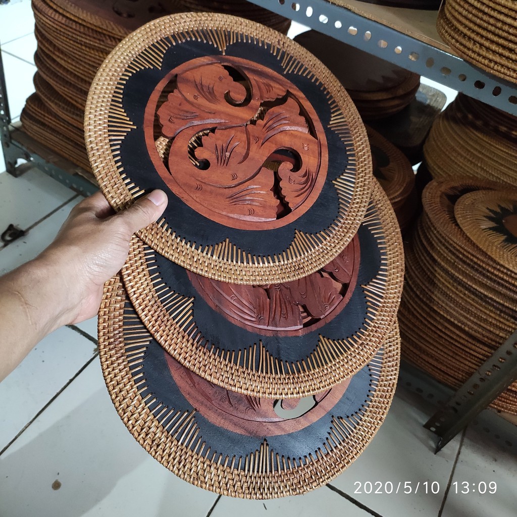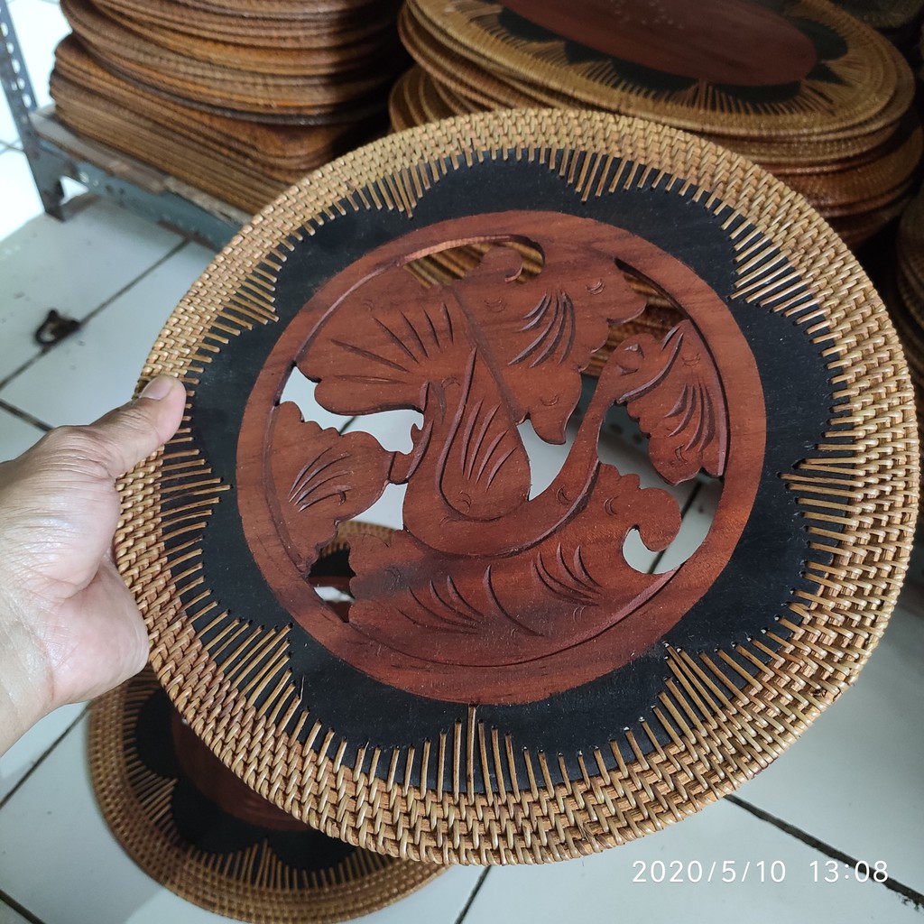 placemat rotan/anyaman rotan/tatakan piring rotan/alas makan rotan/bulat kayu ukir songket 30cm