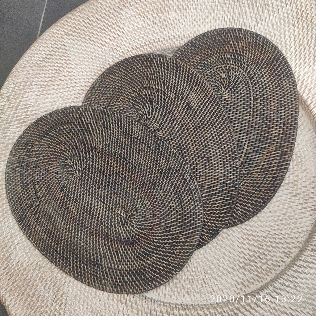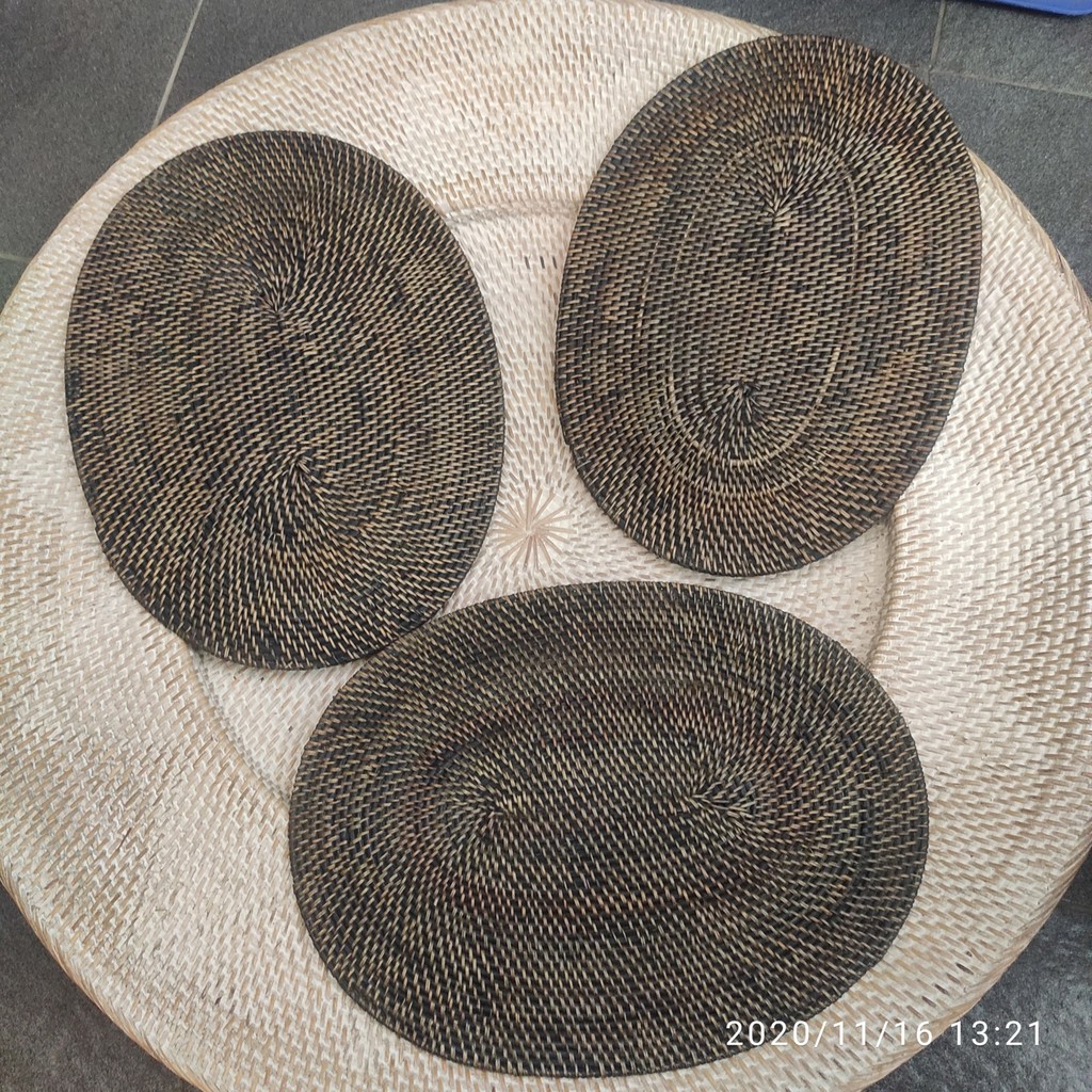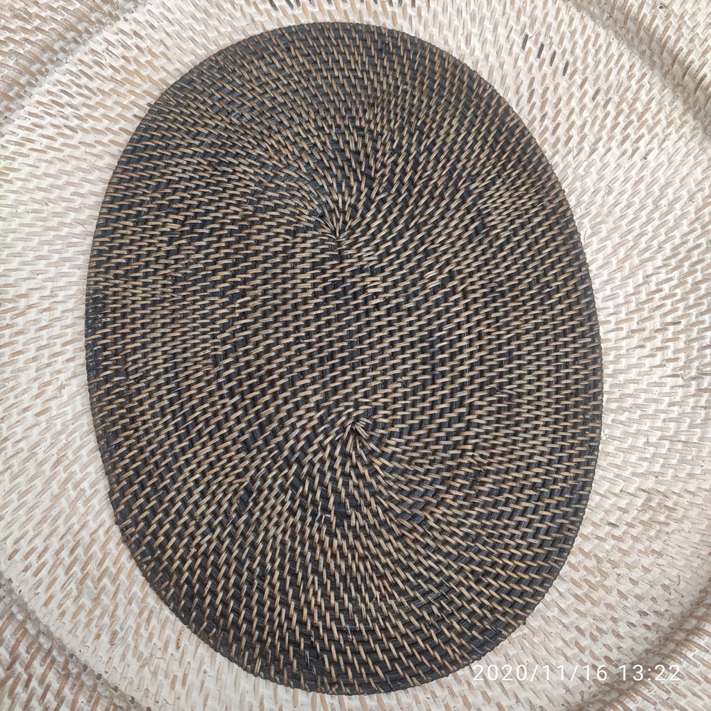 placemat rotan oval 30x40cm/placemat anyaman rotan/alas makan rotan hitam PR030405