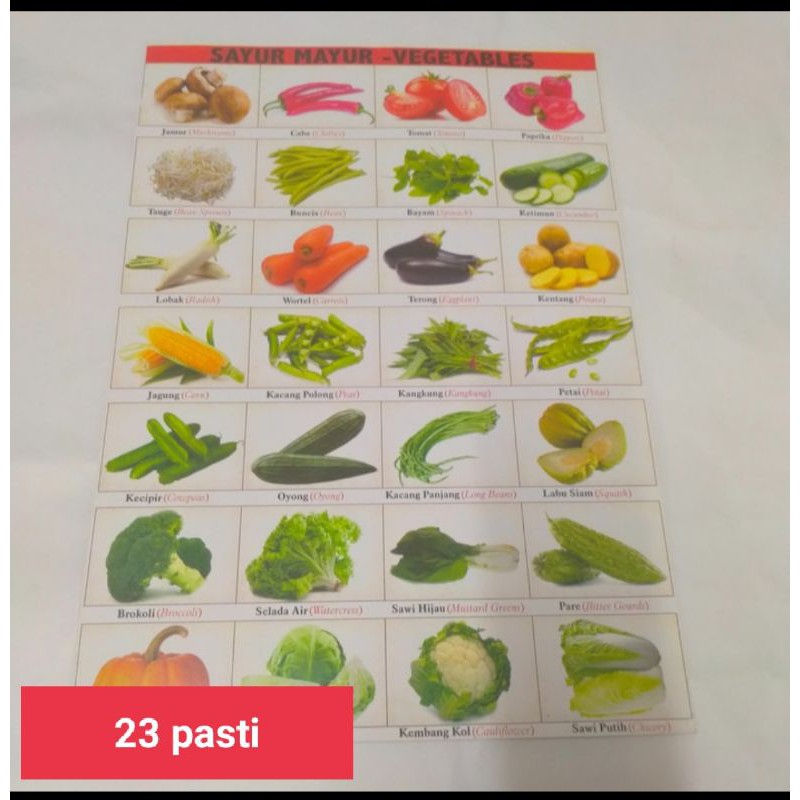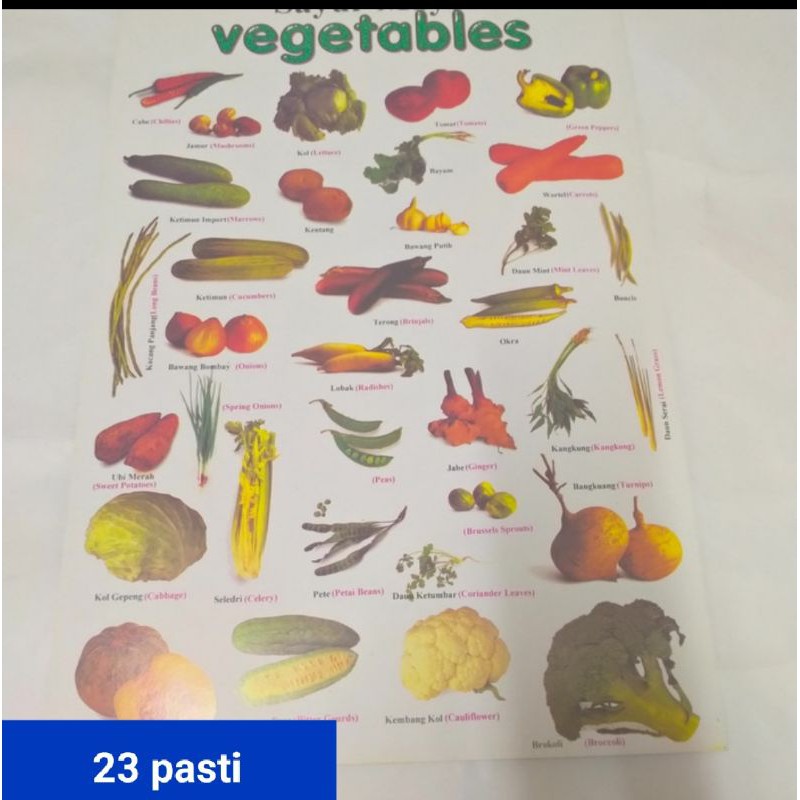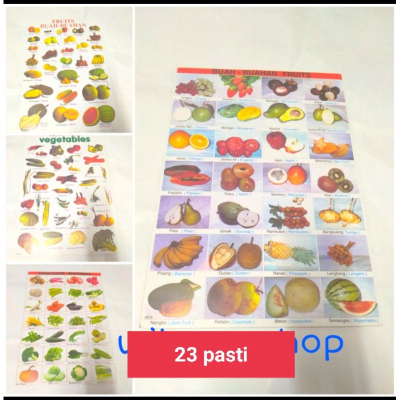 poster buah dan sayuran (Inggris Indonesia)
