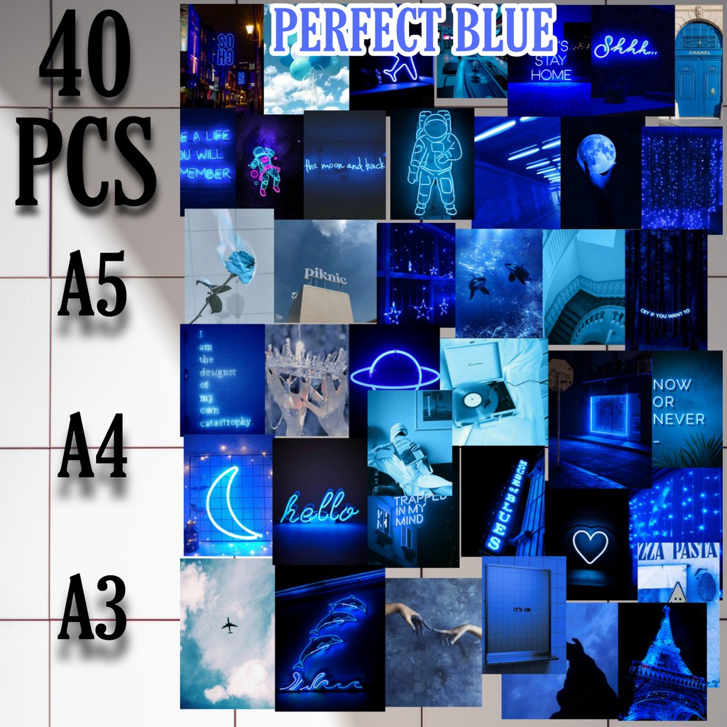 poster dinding aesthetic - poster blue edition - hiasan dinding tema biru