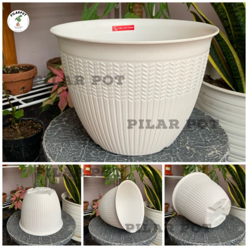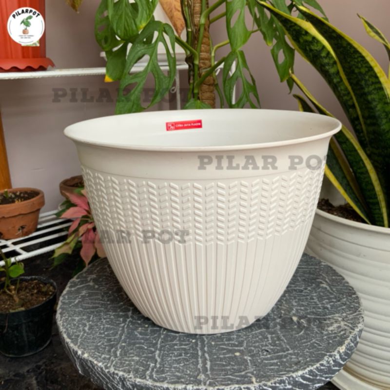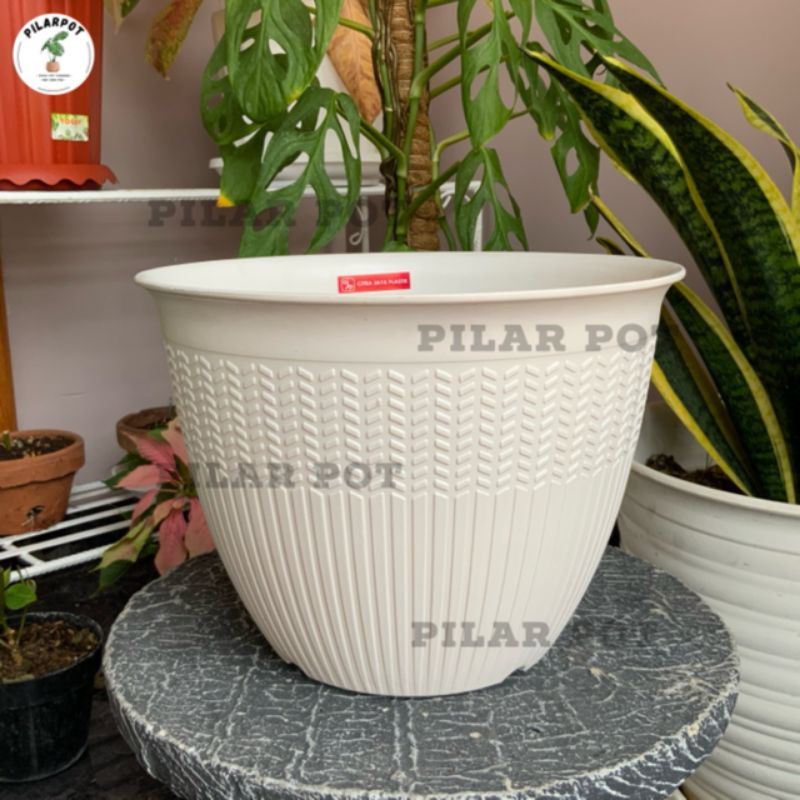 POT BUNGA TANAMAN PADI 25 CITRA JAYA PLASTIK WARNA PUTIH ELEGAN BAHAN TEBAL - CJP 9925 PADI PUTIH