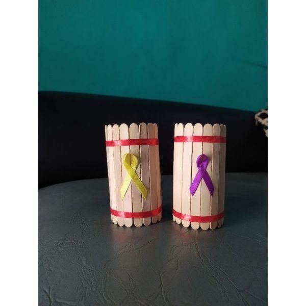 prakarya tempat pensil dari botol bekas dan stik es krim - prakarya stik es krim- pot dari botol bekas - prakarya botol bekas