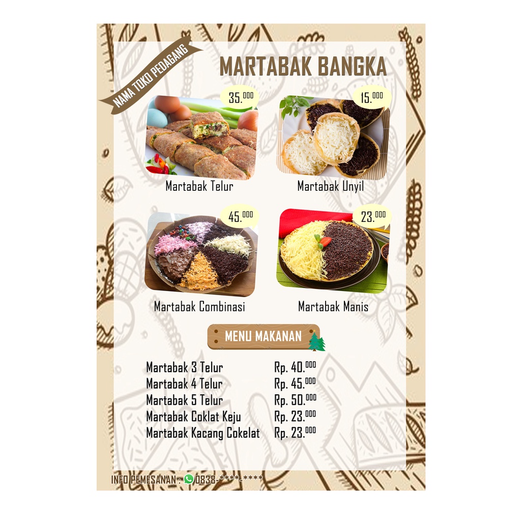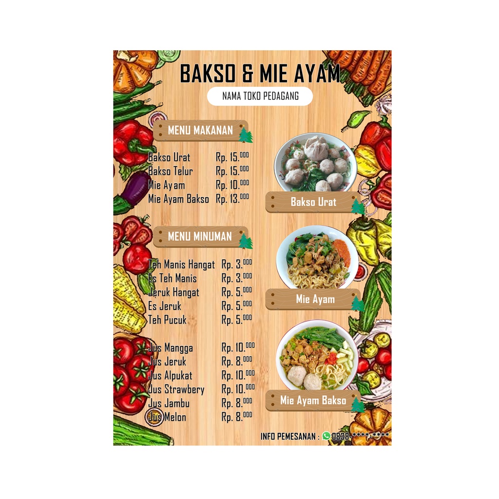 print daftar menu list menu makanan minuman (kertas karton a4 laminating isi 4 lembar ukuran 297x210) daftar harga list harga makanan minuman dagangan dagang menu bakso menu mie ayam menu es menu minuman