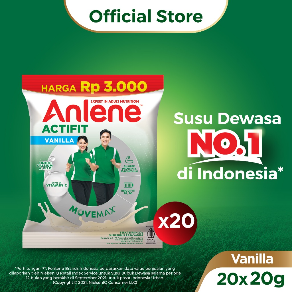 Anlene Susu Bubuk Dewasa Vanila 20 x 20g Sachet - Nutrisi Tinggi Kalsium Untuk Tulang, Sendi, dan Otot