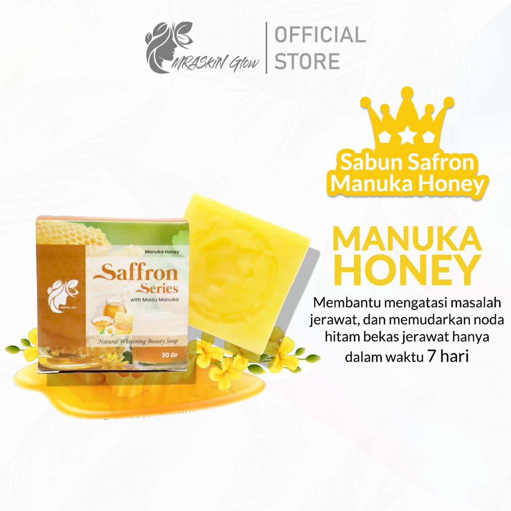 (BELI 3 GRATIS 2) MRASKIN GLOW Sabun Saffron Series Bpom / Sabun Saffon Sakura / Sabun Pencerah Wajah dan Badan / Sabun Pemutih Selutuh Badan dan Wajah / Sabun Pemutih Badan yang Bagus dan ampuh / Sabun MRA SKIN GLOW SAFFRON SERIES