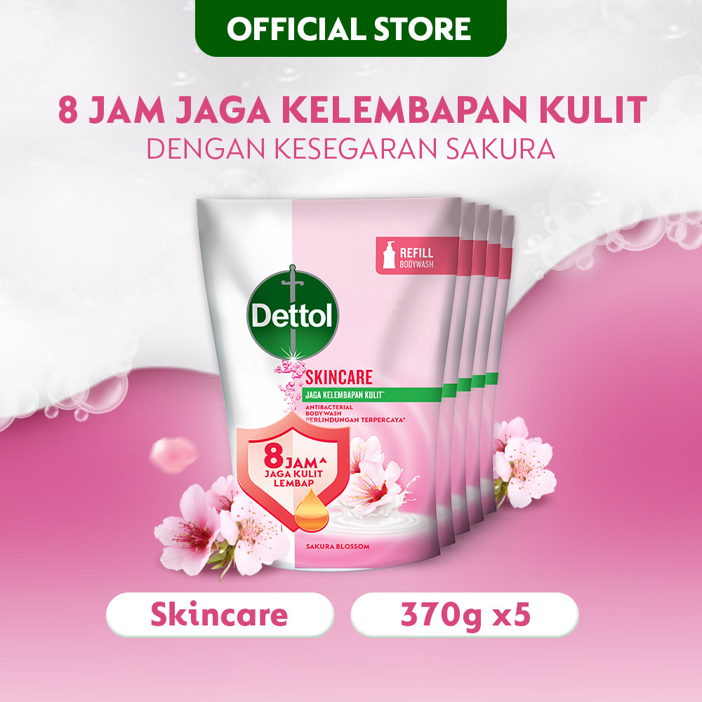 Dettol Sabun Mandi Cair Skincare Anti Bakteri 370gr (5 pcs) Refill - Body Wash Antibacterial