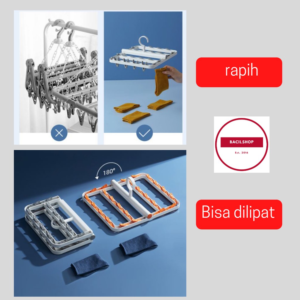 Jemuran Baju Kaos Kaki Masker Gantung Jepit Lipat Multifungsi