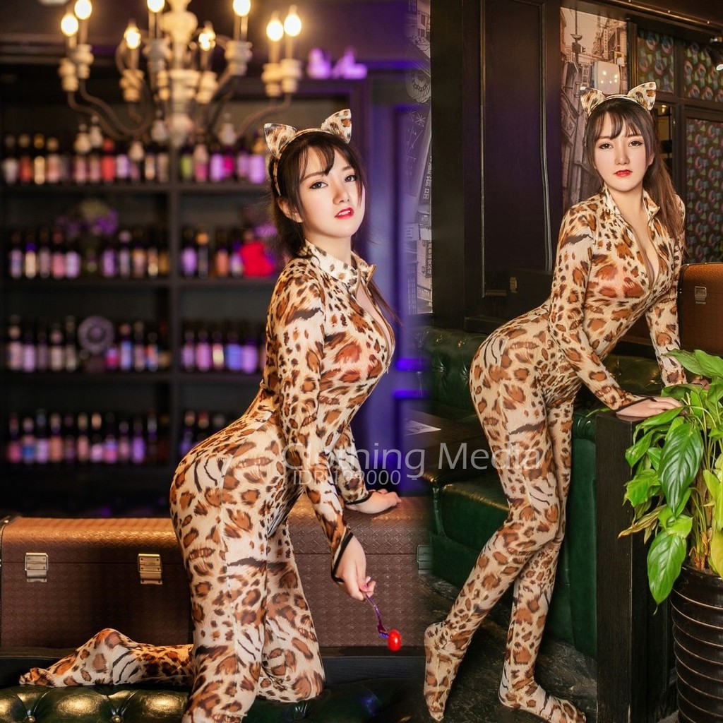 Full Bodysuit Leopard Set Macan Tutul Wanita Lingerie Cat BodyStocking
