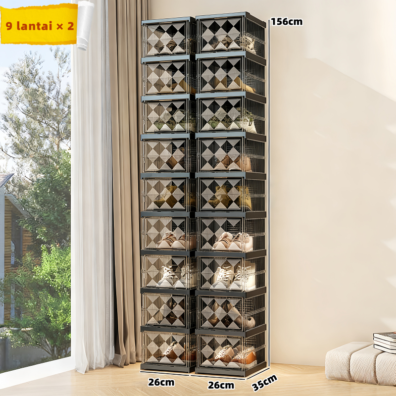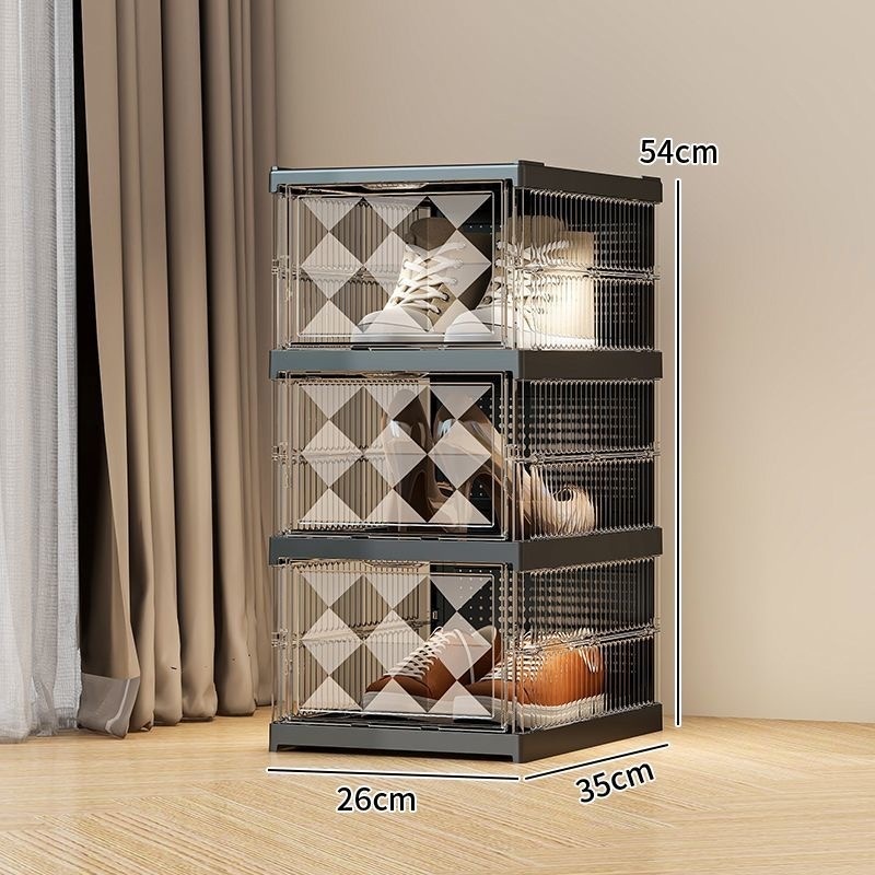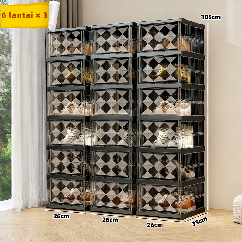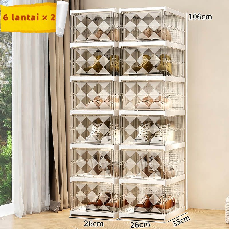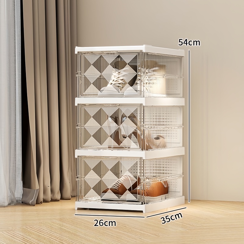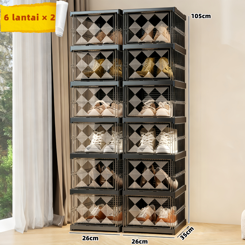 ABC BEAR Tidak perlu instalasi Lebih Tebal Dan Kuat Kotak Sepatu Ukuran Ekstra Besar Shoe Storage Boxes Susun Plastik Lemari Sepatu Rak kotak sepatu portabel multifungsi dengan