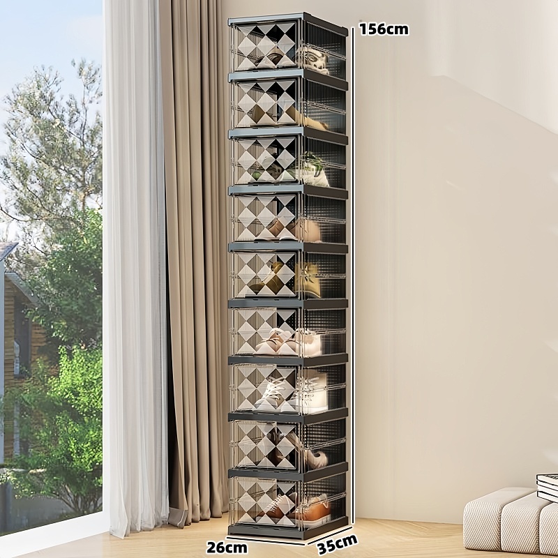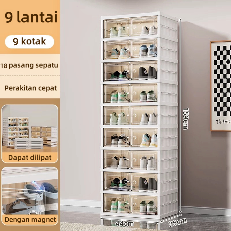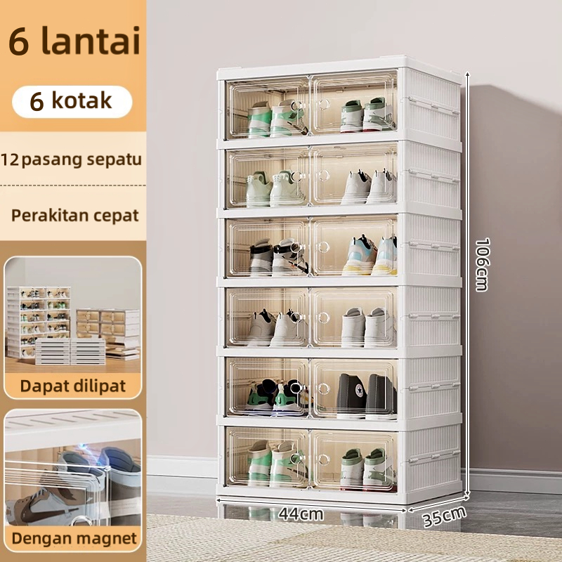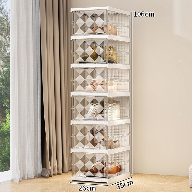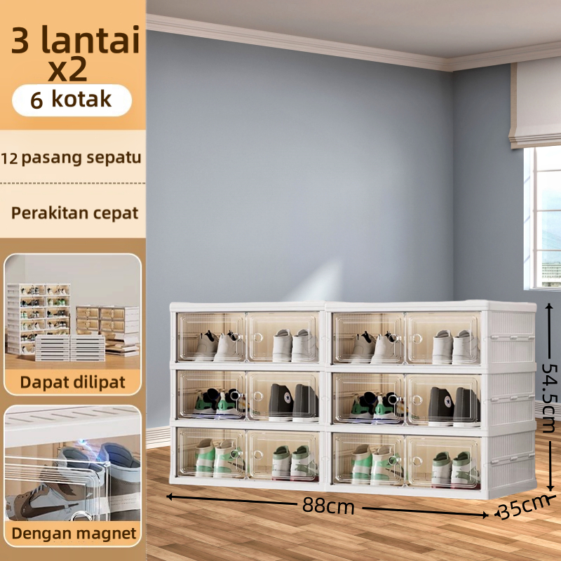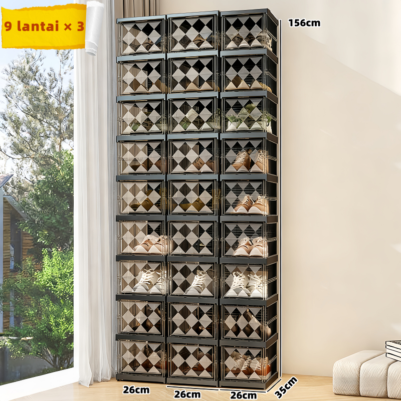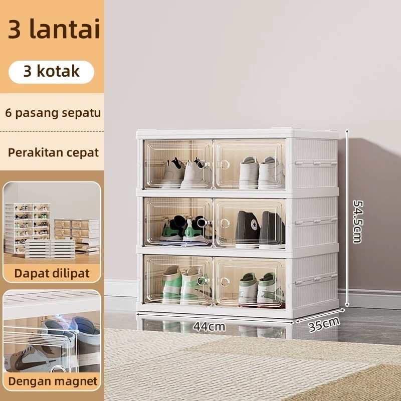 ABC BEAR Tidak perlu instalasi Lebih Tebal Dan Kuat Kotak Sepatu Ukuran Ekstra Besar Shoe Storage Boxes Susun Plastik Lemari Sepatu Rak kotak sepatu portabel multifungsi dengan