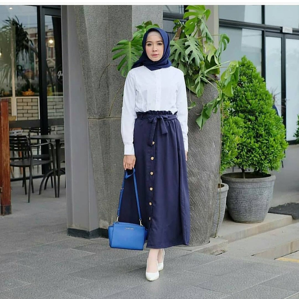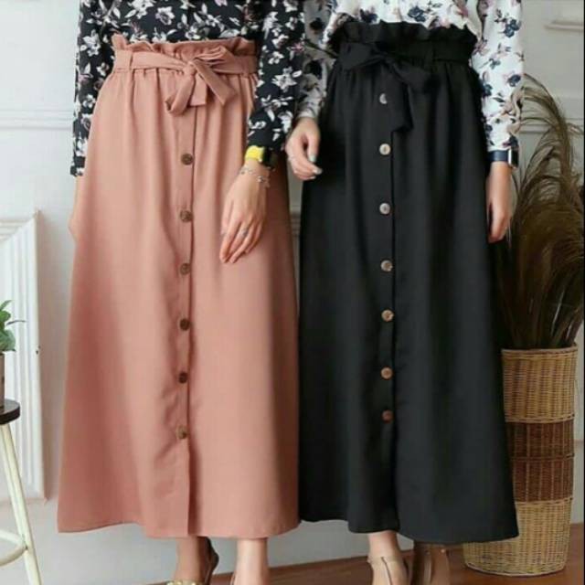 (BONUS 1 HIJAB ) ROK PANJANG KANCING MOSCREPE PREMIUM SKIRT WANITA GROSIRR31 GRATIS ONGKIR