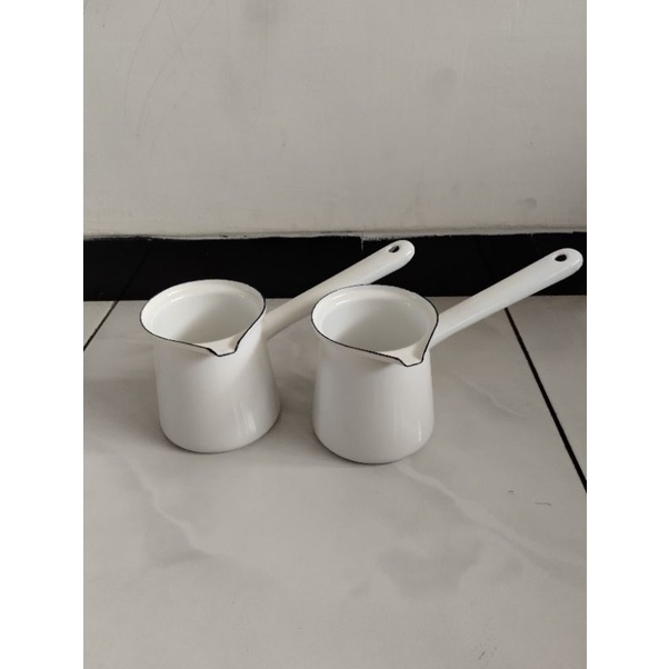 cofee warmer enamel putih / panci enamel putih / milkpan putih / milkpan enamel