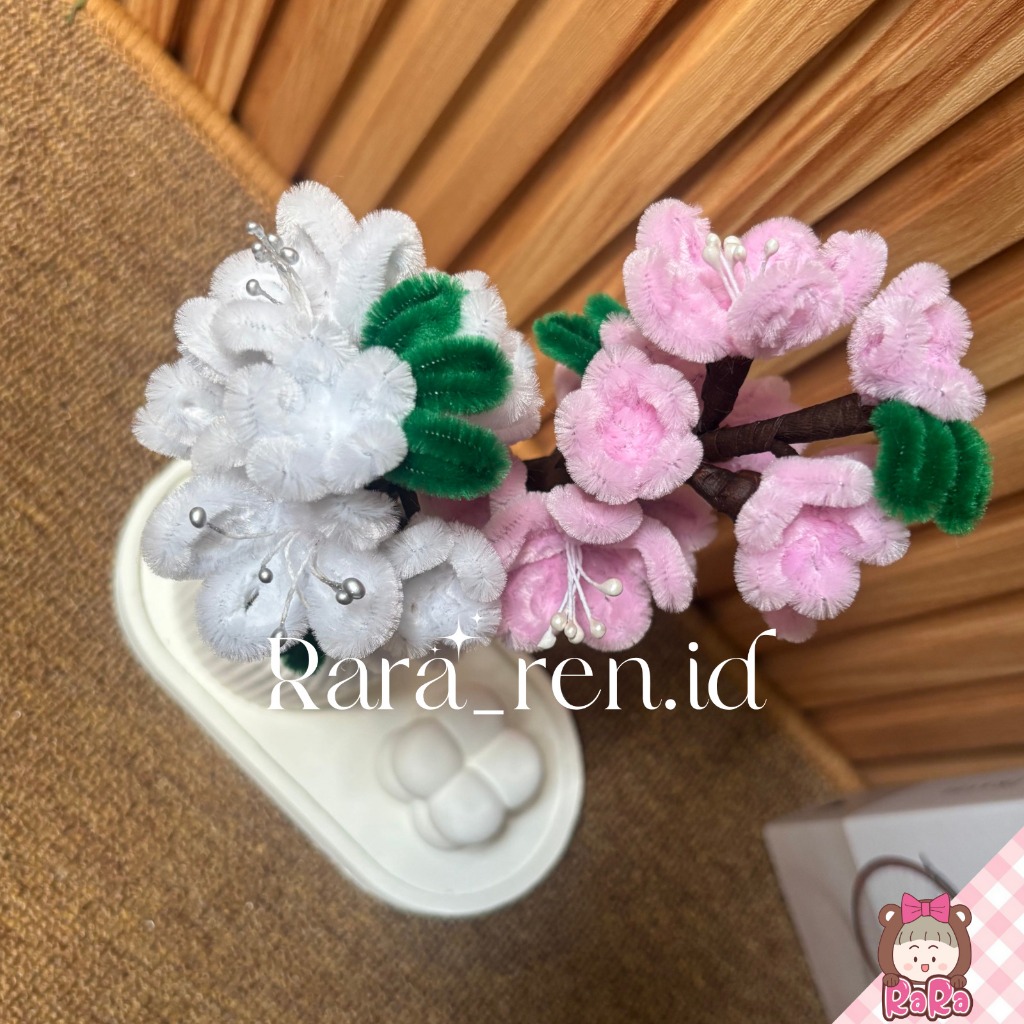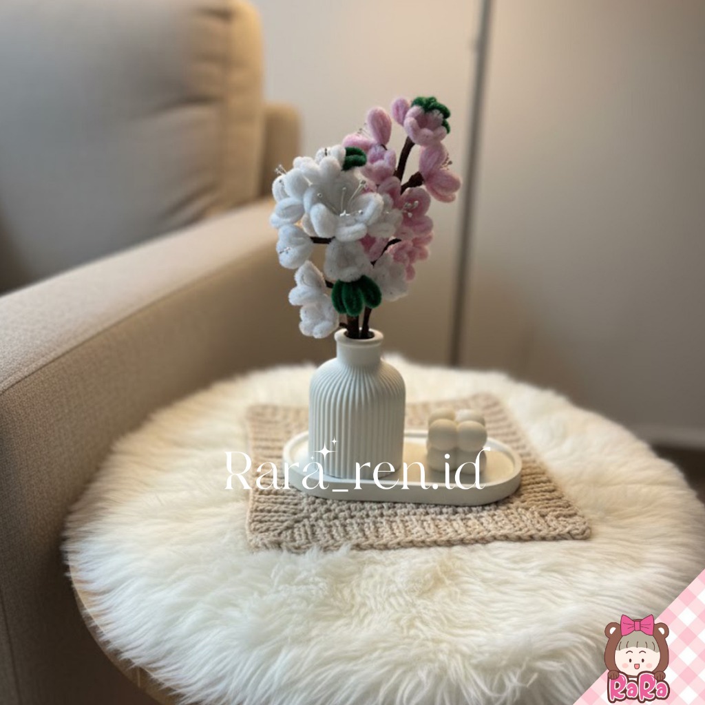1 SET BUNGA SAKURA KAWAT BULU AESTHETIC TERMASUK VAS + COASTER OVAL CONCREATE HIASAN RUMAH SUDUT RUANG TAMU