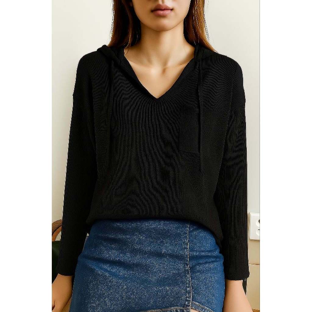 hoodie wanita Vneck terbaru bahan snow rip premium