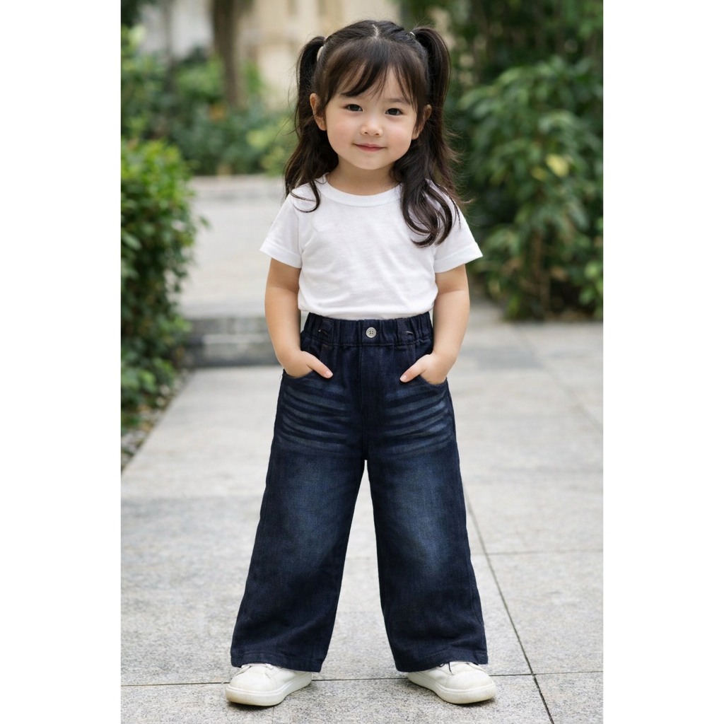 Akela Kids Celana Jeans Baggy Pants Fashion Skena Gombrong Usia 2-6 Tahunan Bahan Denim 65 Oz Pinggang Karet Saku Aktif