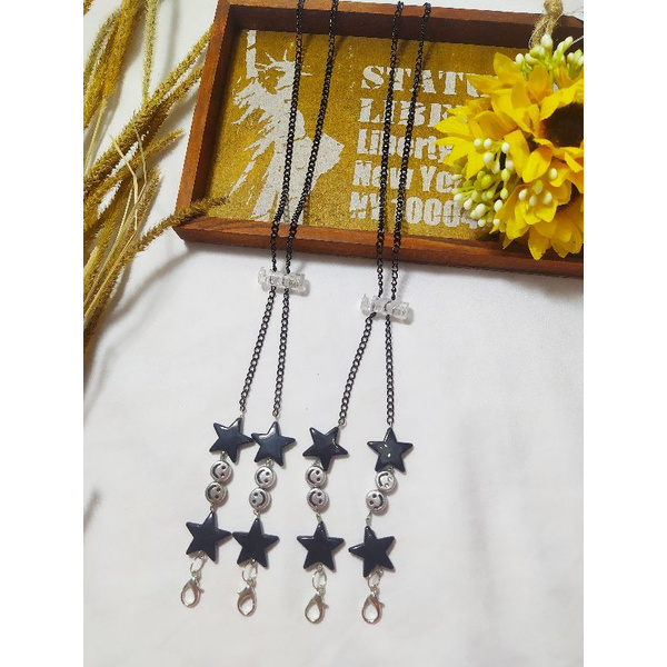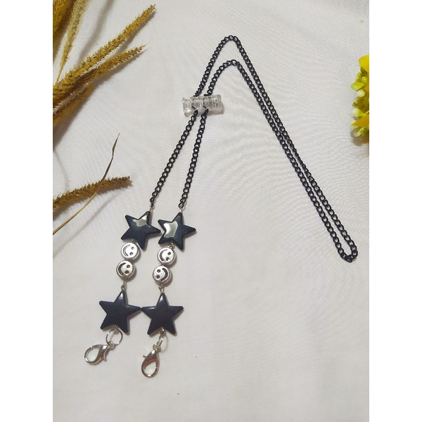 TALI MASKER/PENGAIT HIJAB/KALUNG RANTAI HITAM BINTANG 28