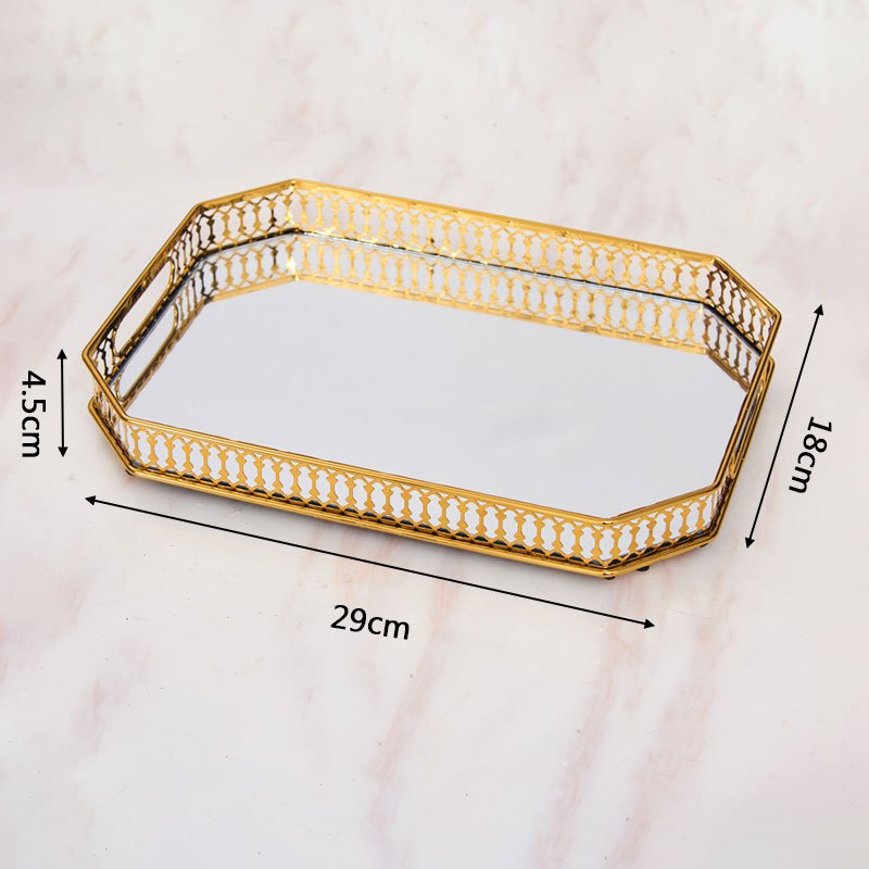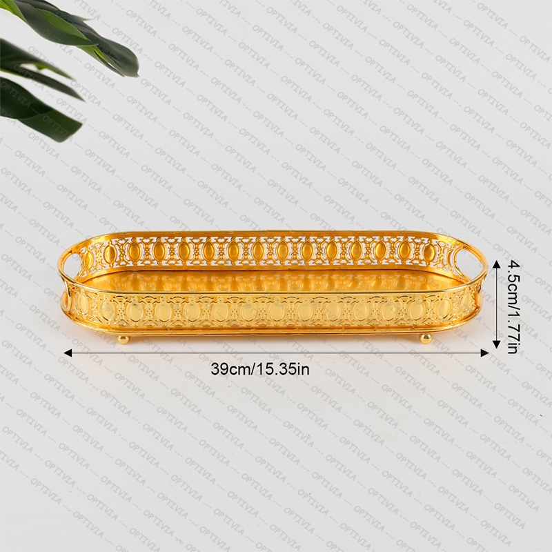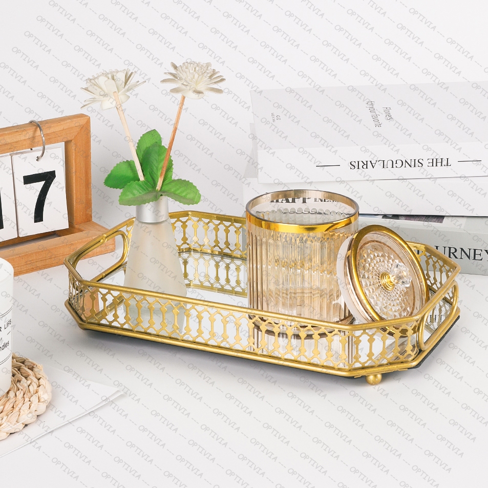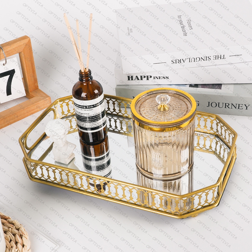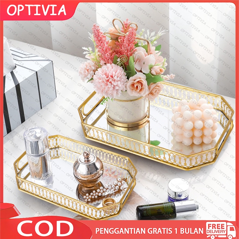 OPTIVIA Nordic Cahaya Gaya Mewah Emas Besi Tempa Kaca Cermin Dasar Tray Ruang Tamu Desktop Perhiasan Tray Rumah Tangga Nampan Penyimpanan