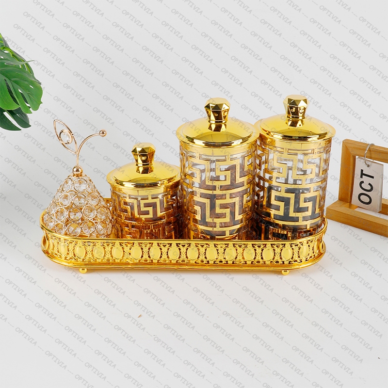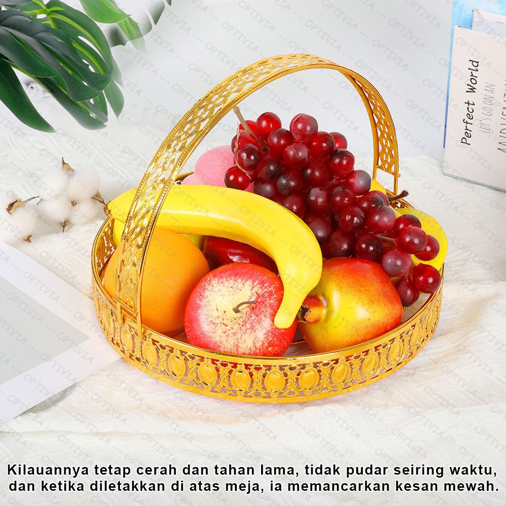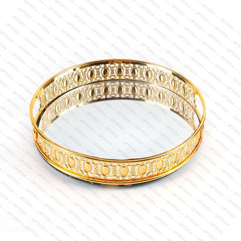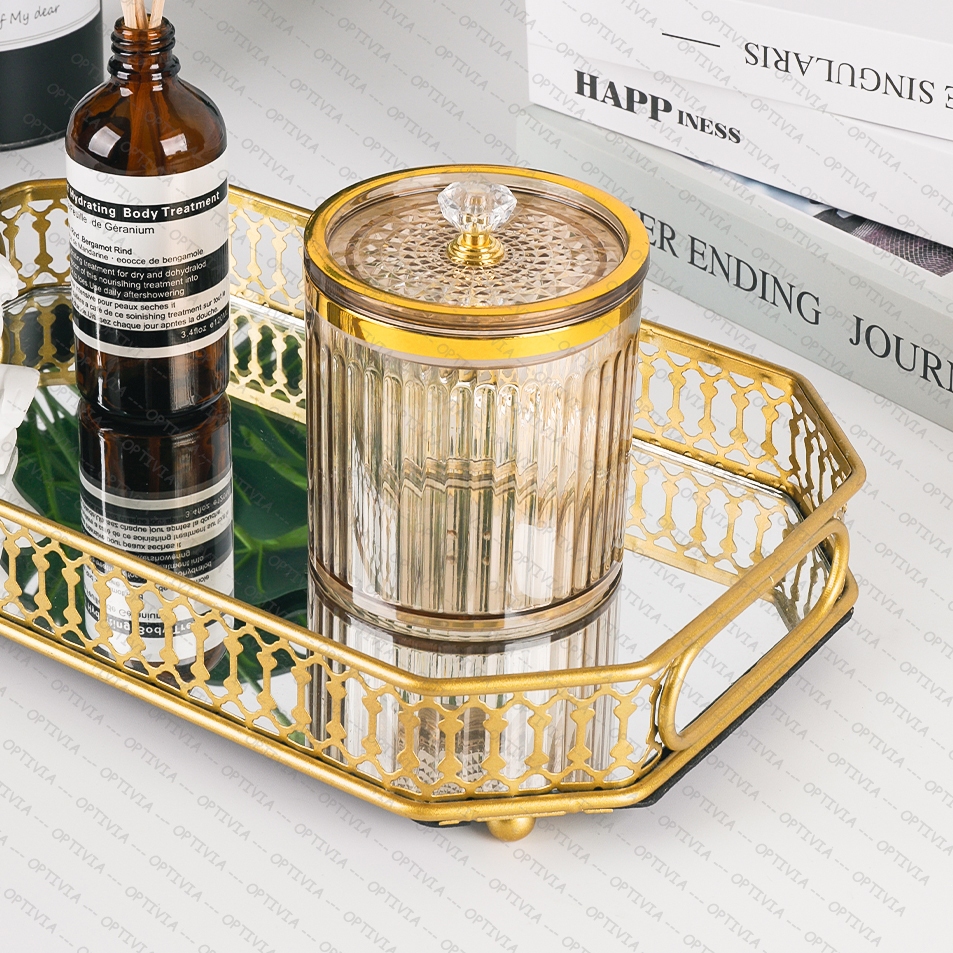 OPTIVIA Nordic Cahaya Gaya Mewah Emas Besi Tempa Kaca Cermin Dasar Tray Ruang Tamu Desktop Perhiasan Tray Rumah Tangga Nampan Penyimpanan