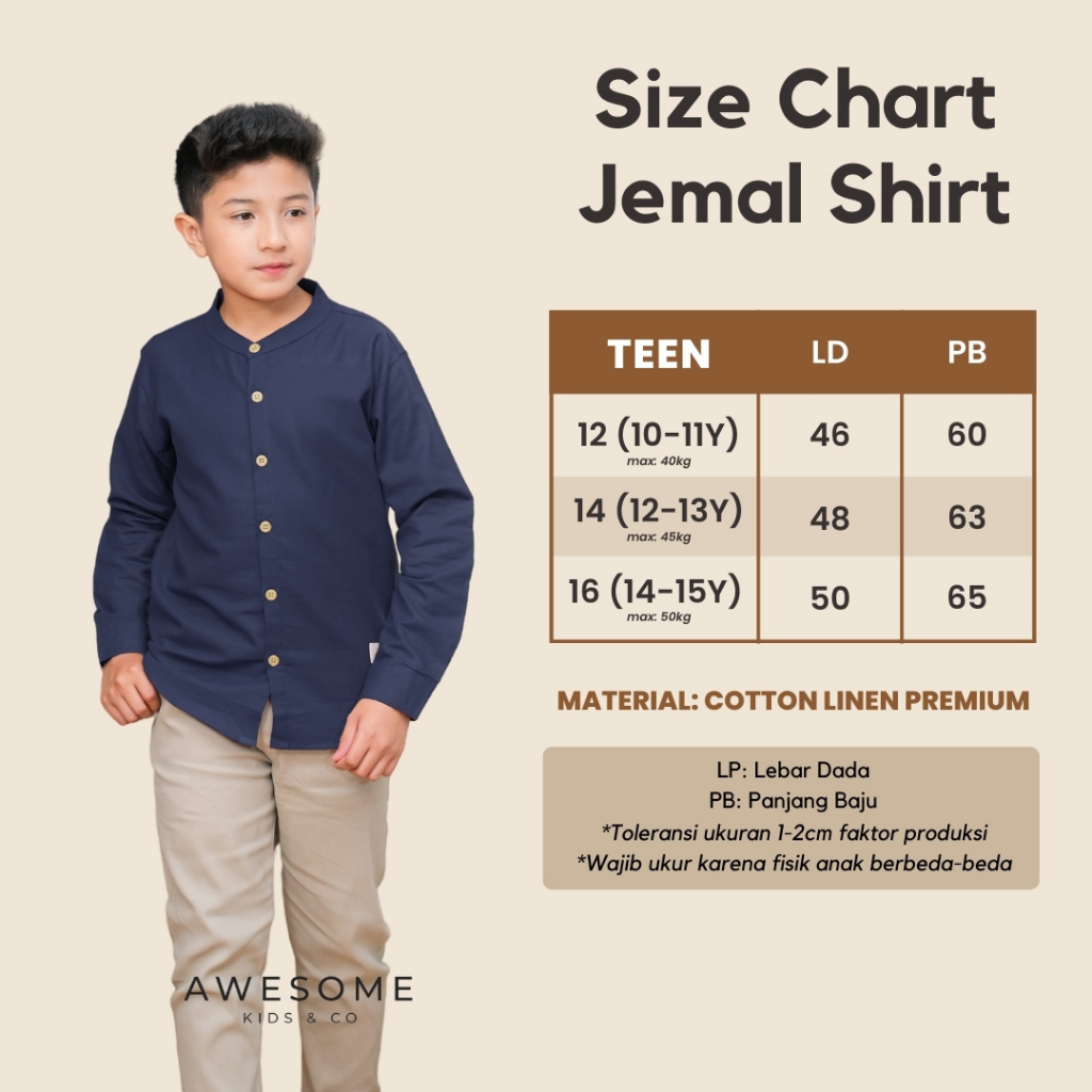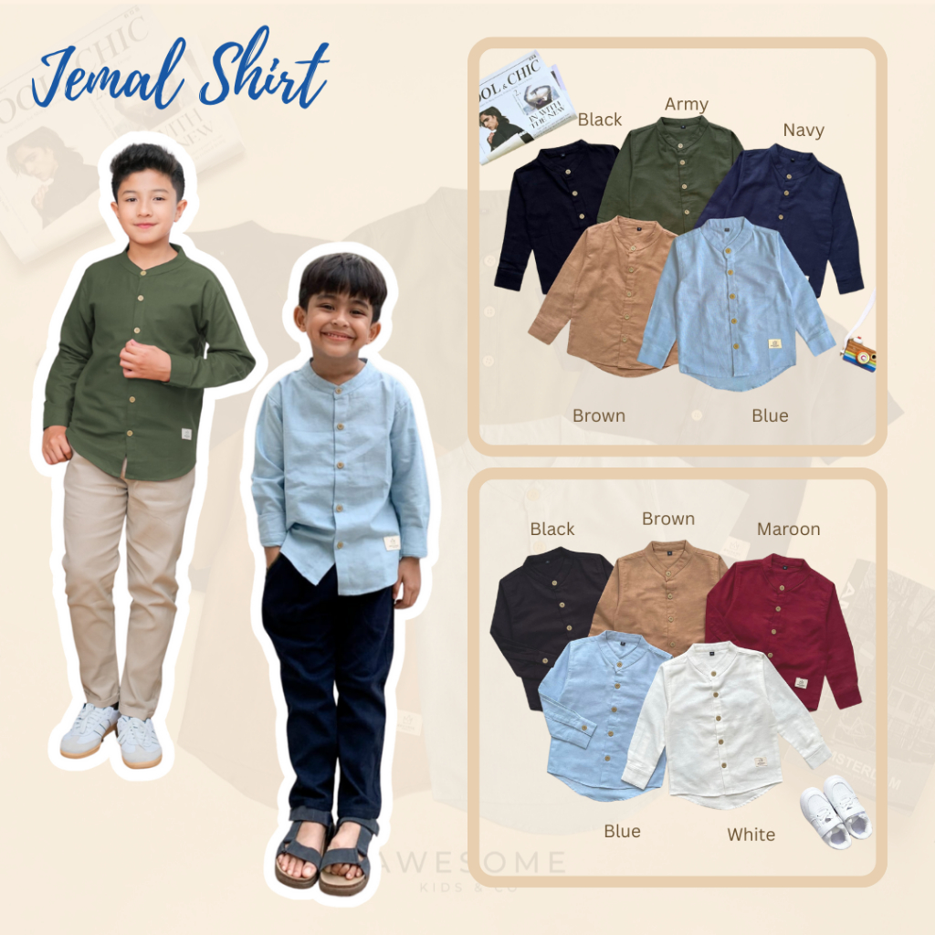 Baju Koko Kemeja Anak Tangan Panjang Laki Laki Ayah Couple Sarimbit Jemal Remaja 1-16 Tahun