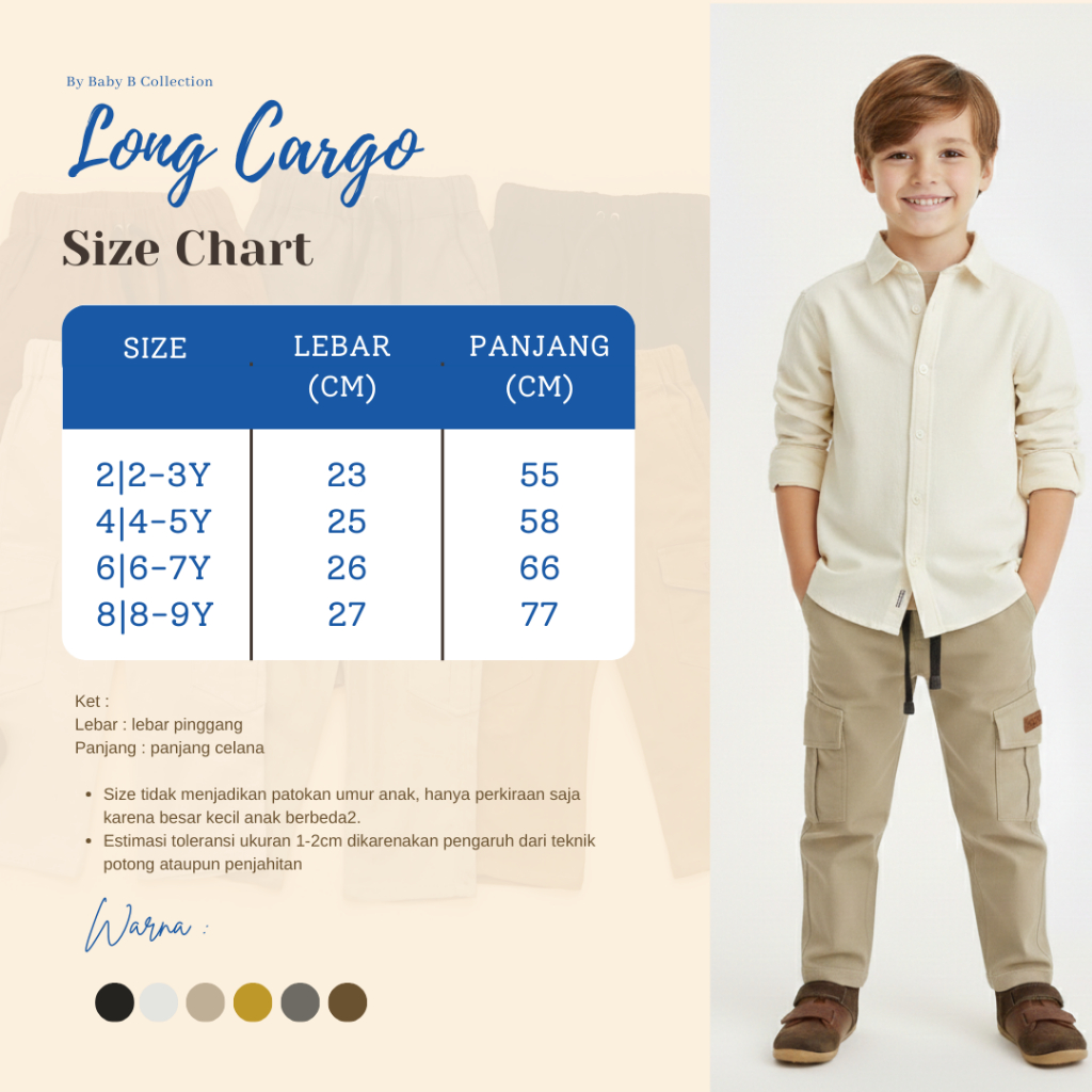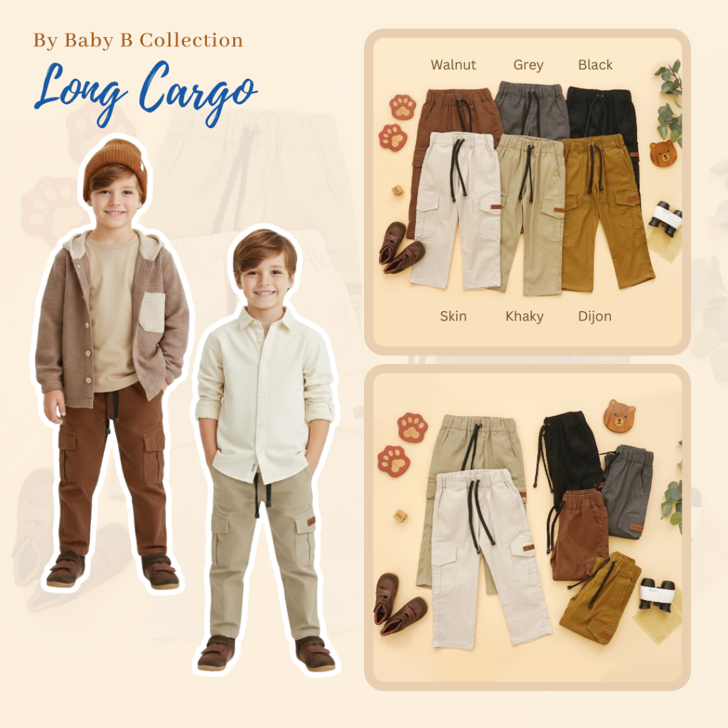 Celana Anak Laki Laki Perempuan Long Cargo Pants 2 - 9 Tahun
