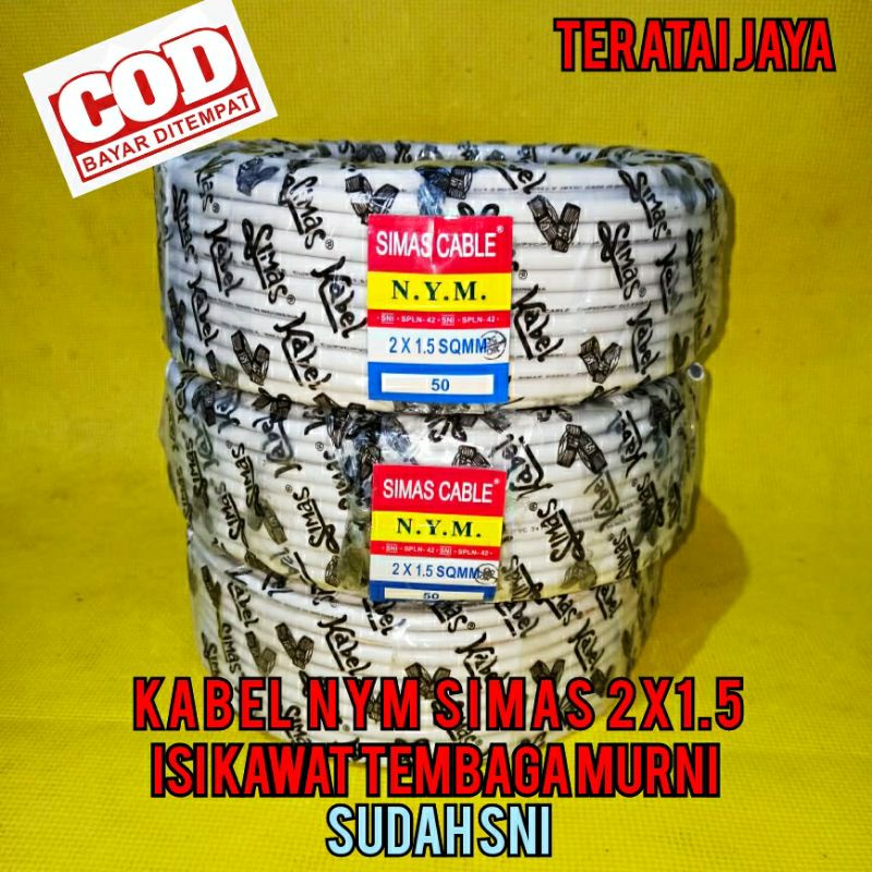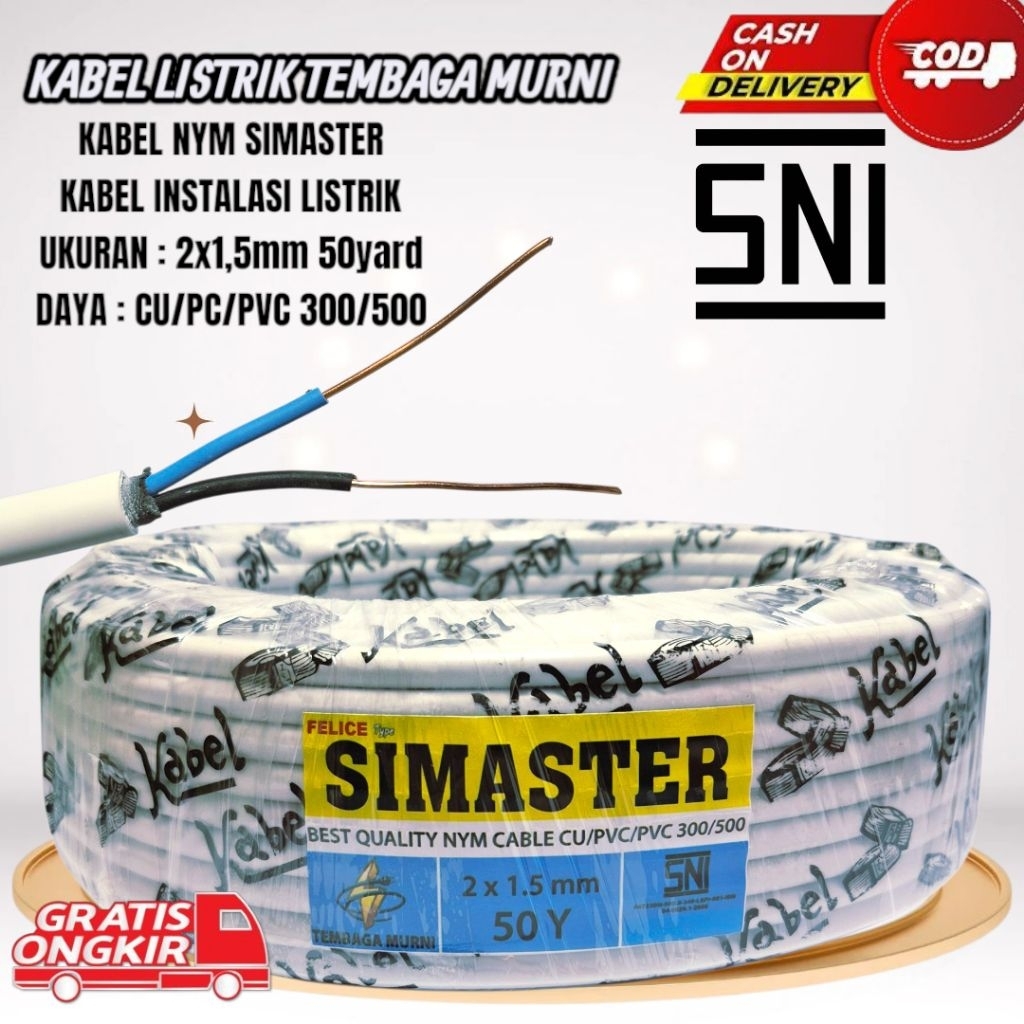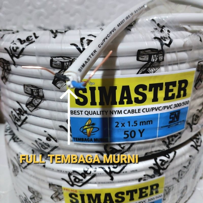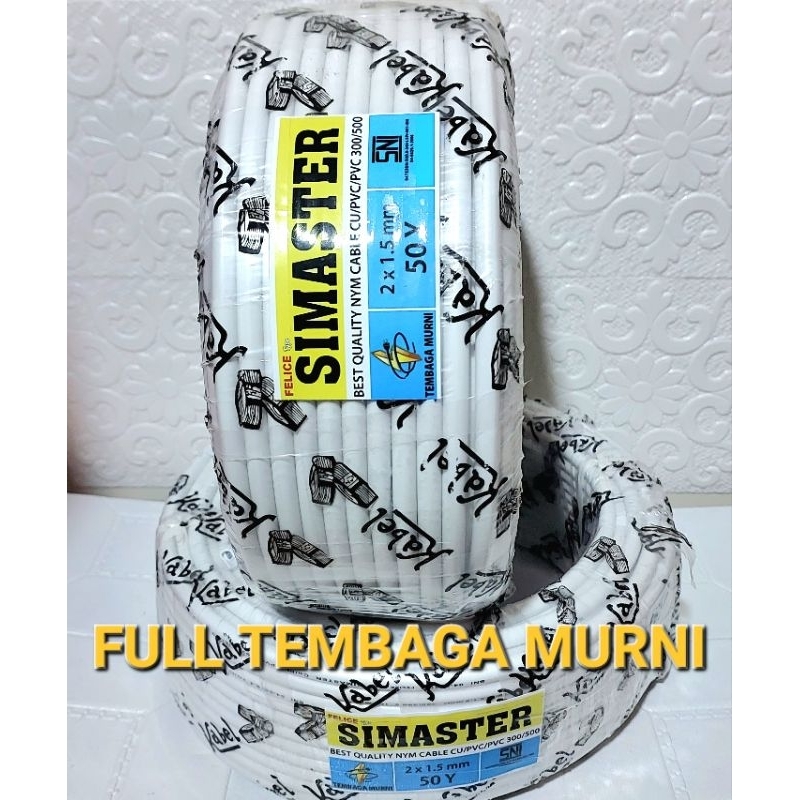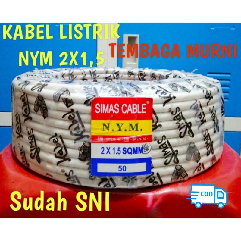 KABEL Listrik TEMBAGA NYM Simas 2x1,5 /asli tembaga Murni SNI50yard