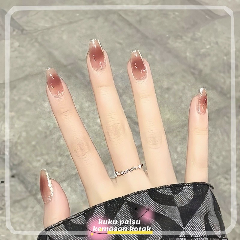 Fake Nails French Fade Modern Halus Nude & Coklat Bagus