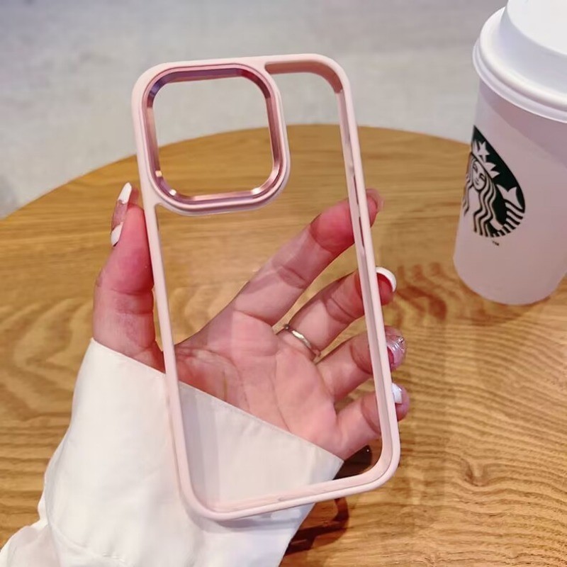 COD Aesthetic HP Casing Ponsel Akrilik Dilapisi Untuk iPhone XR XS Max 16 11 15 Pro Max 13 14 12 Pro Max 6 8 7 Plus Bingkai Case Pelindung Ponsel Anti Jatuh Silikon