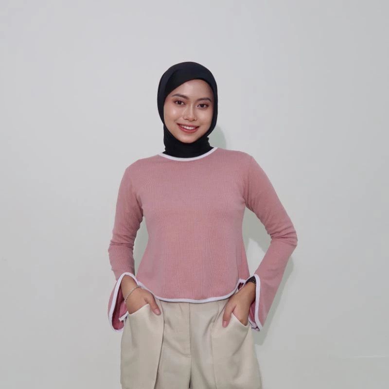Elara Top Pastelly Outfit | Atasan Knit Wanita Korean Lengan Panjang Basic Long Sleeve