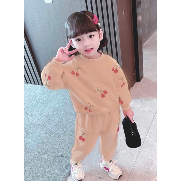 TokoMilkan Setelan Anak Perempuan Cherry | Sweater Baju Anak Umur 1-5 Tahun