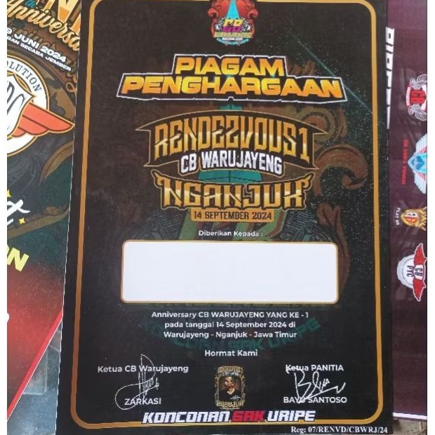 Piagam acara CB Warujayeng Nganjuk Rendezvous 1