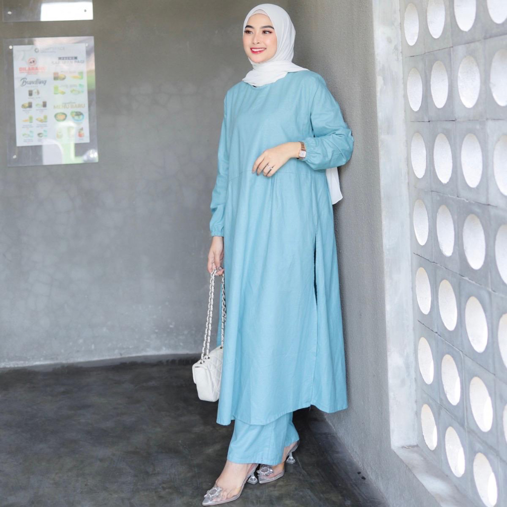 Setelan Tunik Celana Kulot Oneset Bahan Linen Wanita Terbaru Setelan Model Kasual - JOANA