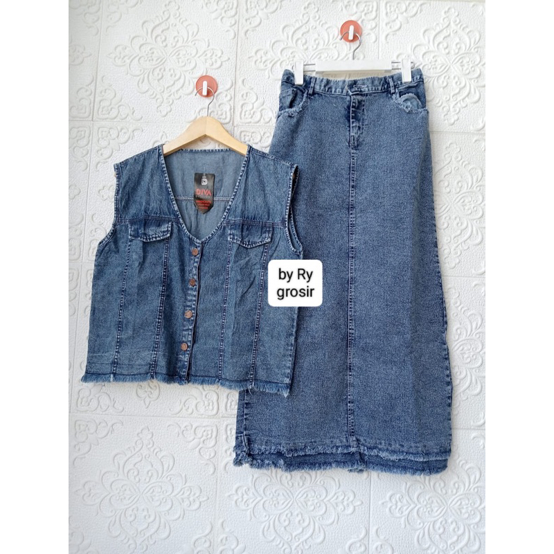 Setelan wanita Rompi + Rok Span Rawis Jeans