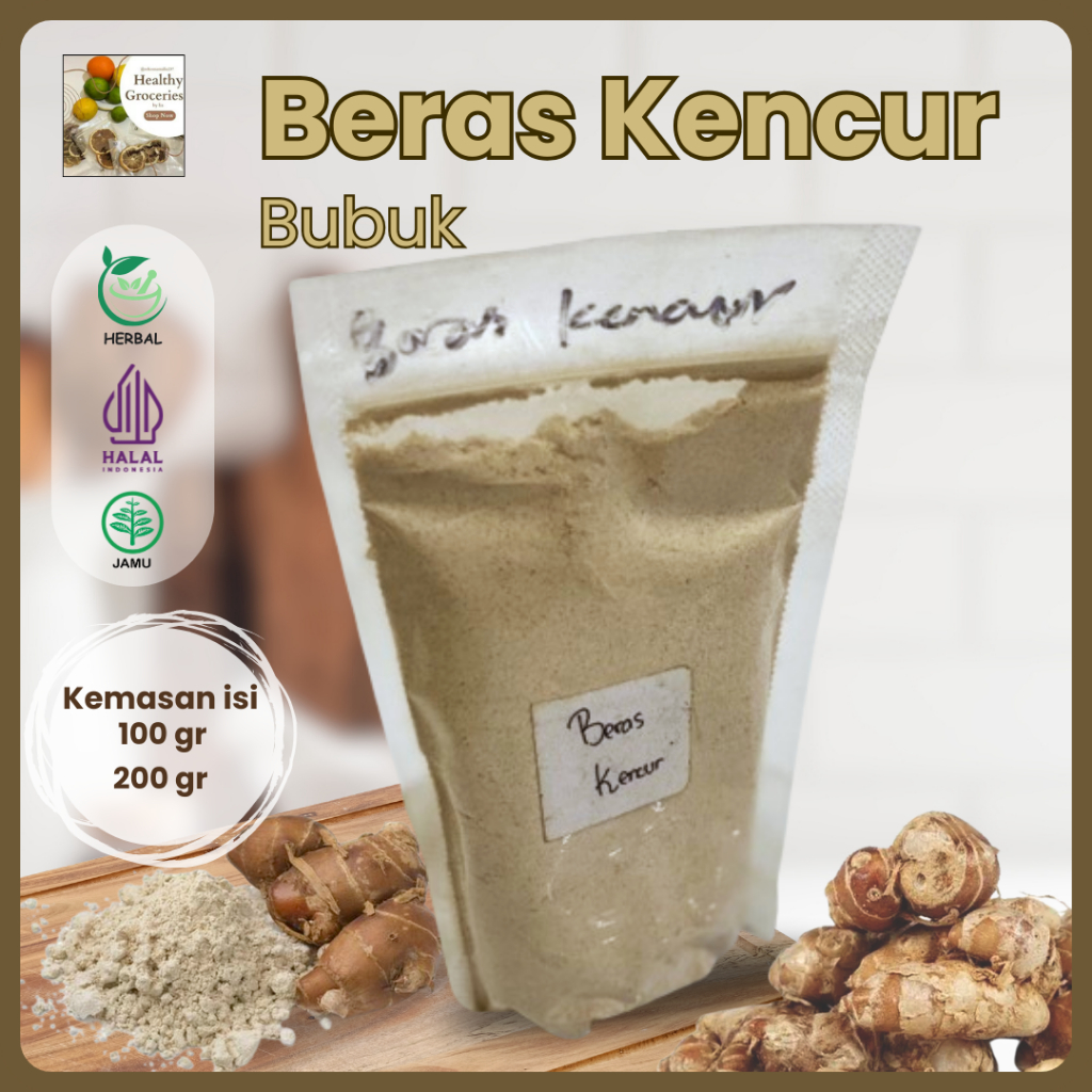 Bubuk Beras Kencur Putih (100 Gram, 200 Gram) MURNI 100% PREMIUM / Jamu / Obat Herbal / Tradisional / Grade A