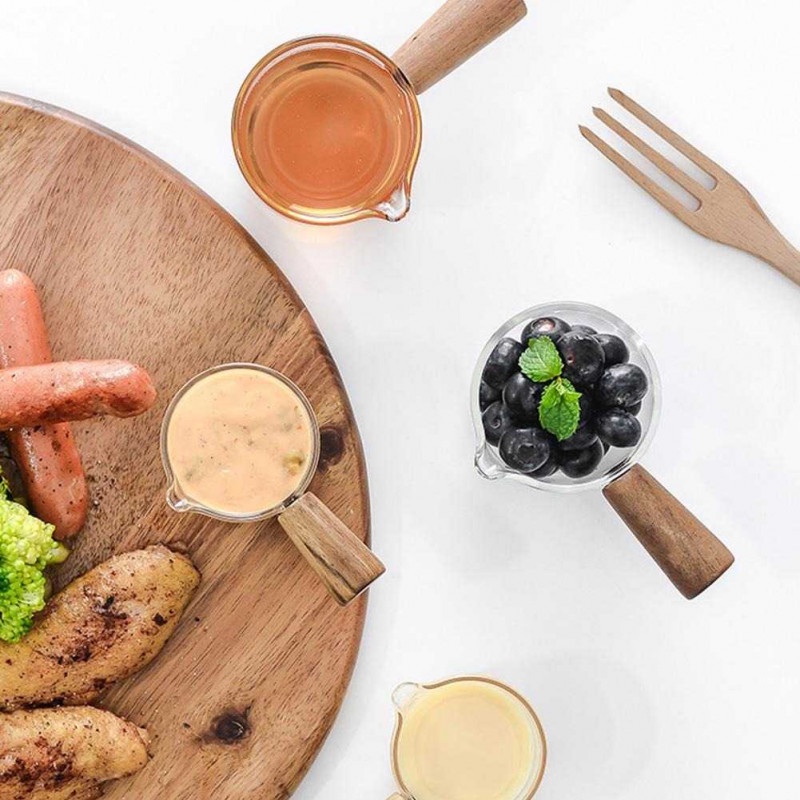 Gelas Pitcher Kaca Handle Kayu Kopi Latte Art - S10